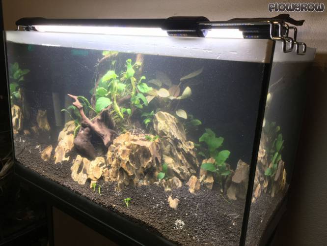 Vor ca. 2 Jahren habe ich mich dann mal etwas näher mit der ganzen Materie rund um Pflanzenaquarien, Aquascapes usw. beschäftigt. Das Aquarium wurde dann mit anständigem LED_Licht und CO² ausgesstattet, und ich habe einige Zeit mit verschiedenen Pflanzen, Moosen und Bodengründen herumexperimentiert.