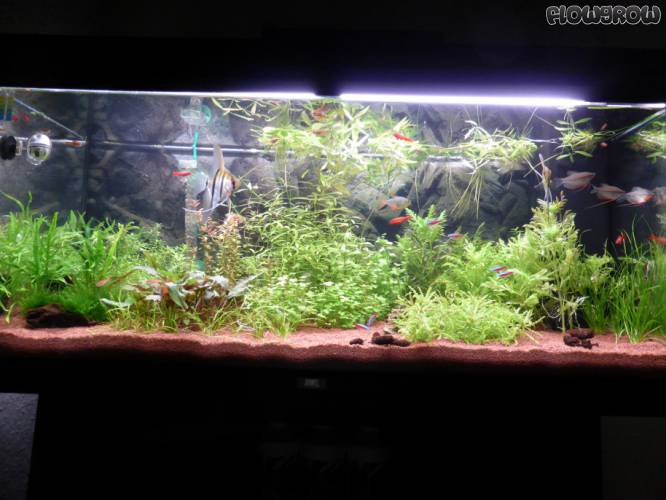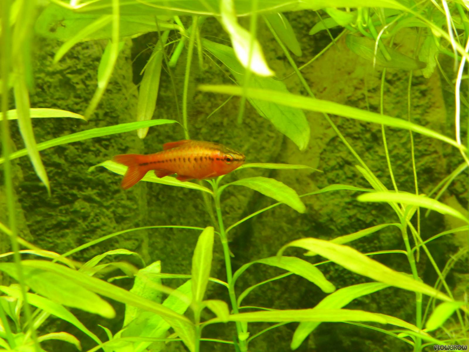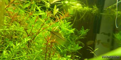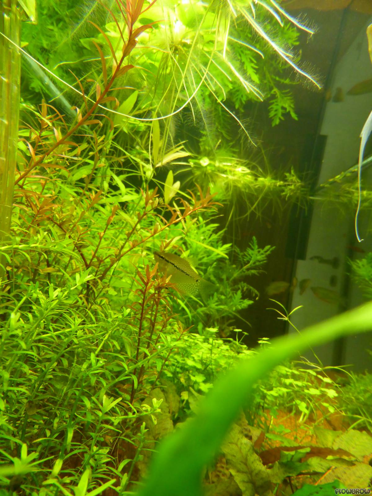 Die Wasserpflanzen stammen zum Großteil aus Asien (Ausnahme: Helanthium tenellum) und überzeugen durch z.T. filigrane Blattform (Hygrophila pinnatifida, Hygrophila difformis) und Farbe (bräunlich durch Rotala und Cryptocoryne). Einige Arten werden noch entfernt bzw. Büsche werden vergrößert. Dazu gehört z. B. die Rotala rotundifolia, die gerade neu gesteckt wurde und H. polysperma, die ersetzt wird.