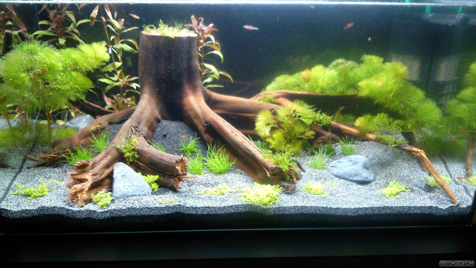 Kein traditionelles Aquascaping, jedoch von der Natur inspiriert. Soll später aussehen, wie ein mit Moos überwachsener Baumstumpf