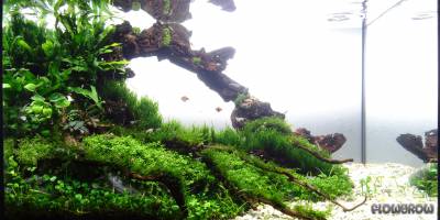 Schönes kleines Becken. Leider geht die Tiefe etwas verloren, da es an Kontrasten fehlt. Der Driftwood Bogen wirkt ein bisschen verloren, da er sich nicht positiv auf die Perspektive auswirkt.