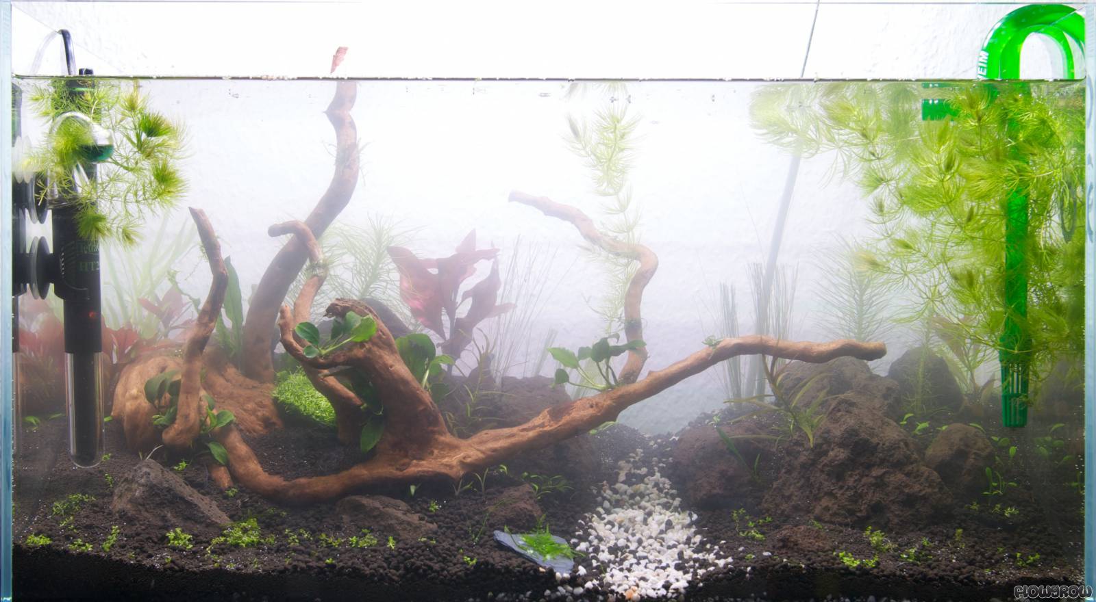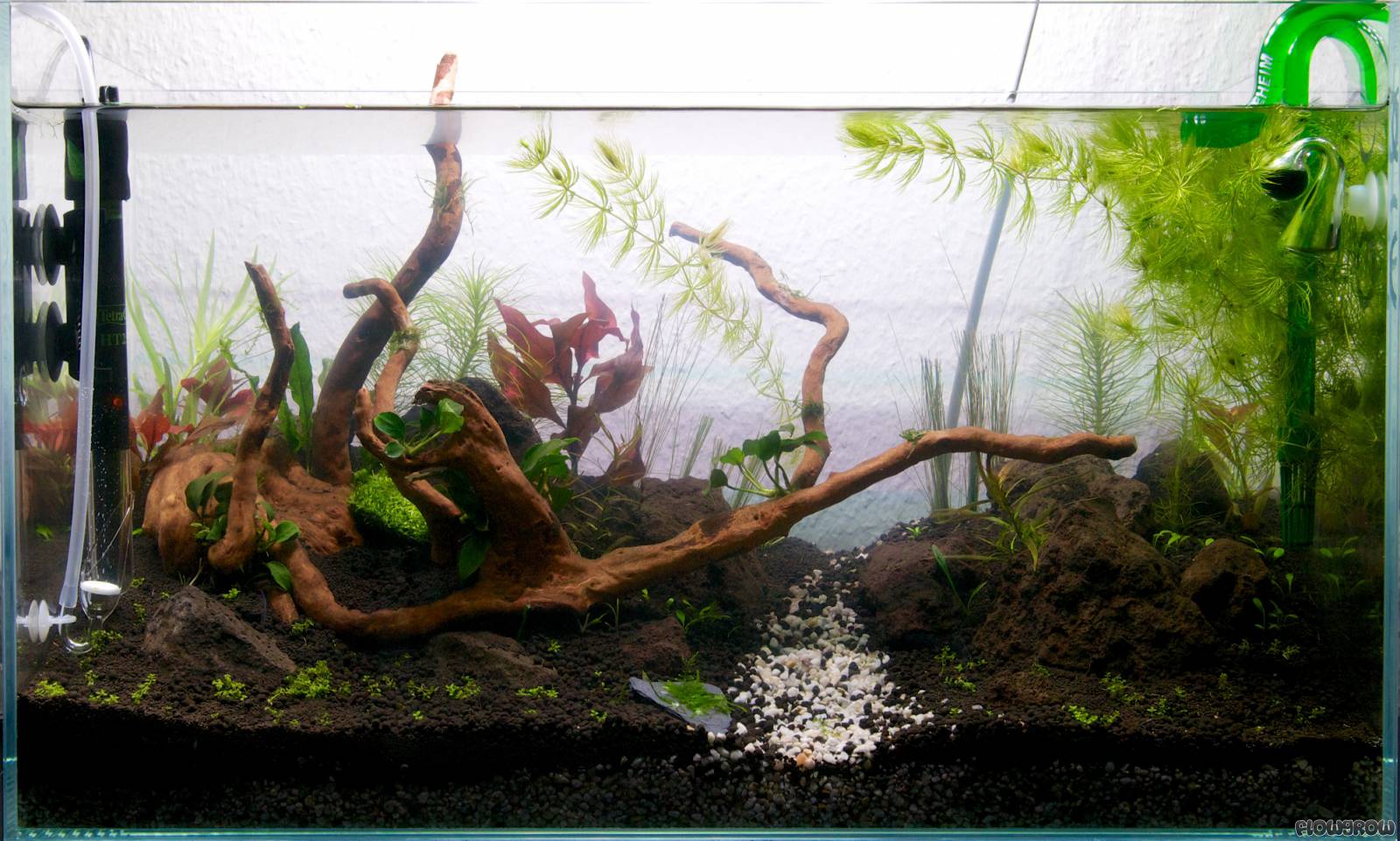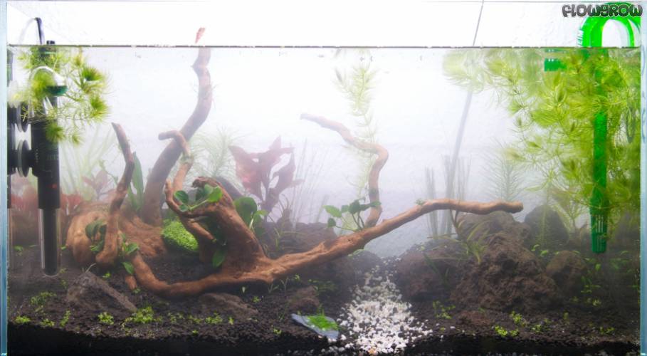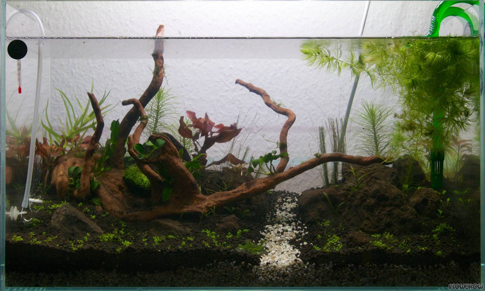 ... kleiner Eingriff beim letzten Wasserwechsel. Die Wurzel wurde in der Lage korrigiert und es sind noch ein paar Pflanzen eingezogen...
