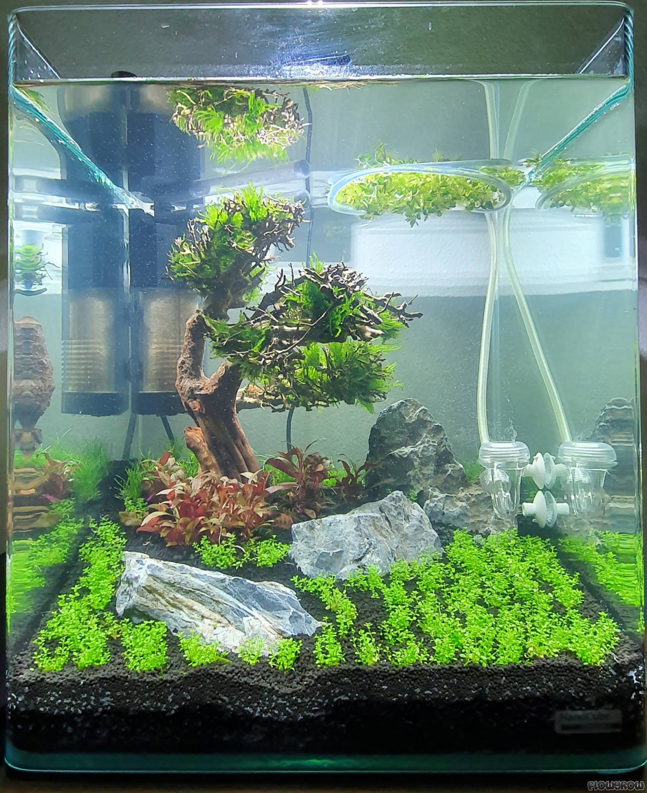 Jedoch war es was den Pflegeaufwand anging so extrem, dass ich mich dafür entschieden habe, es abzubauen. Weeping Moos im Bonsai in Verbindung mit feinen Bodendeckern und Garnelen die jede Möglichkeit nutzen, um beim Moosfitzel absaugen mitgesaugt zu werden, war mir zu viel...