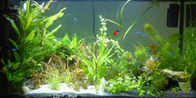 Ich habe das Aquarium mit Pflanzen und Fischen komplett übernommen. Seither hat sich aber an Pflanzen und Besatz so einiges geändert und ich bin jetzt zumindest was die Fische angeht schon mal sehr zufrieden.