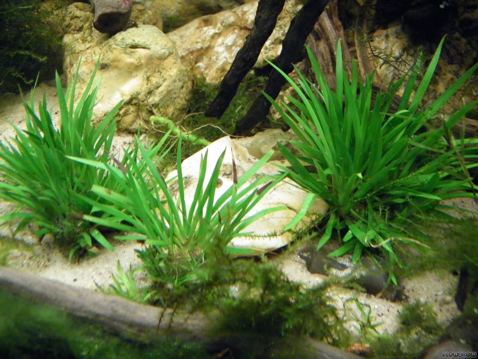At least the dwarf cultivar Acorus gramineus 'Pusillus' is suited as aquarium plant. This presupposes that the rhizome is not buried into the substrate but fastened to objects such as wood or rock. The plant attaches itself by its roots. Whether this is also the case with the taller forms such as A. gramineus 'Variegatus' is unknown to us. Variants like this are recommended as emergent plants for open tanks or paludariums.