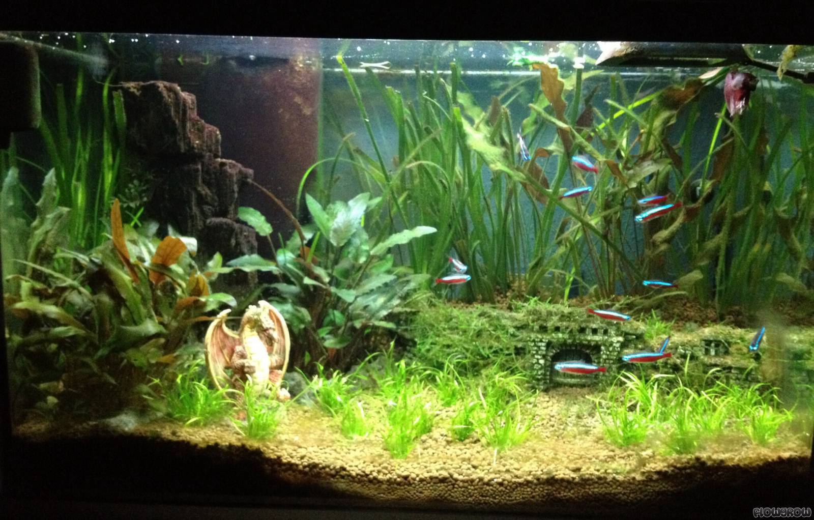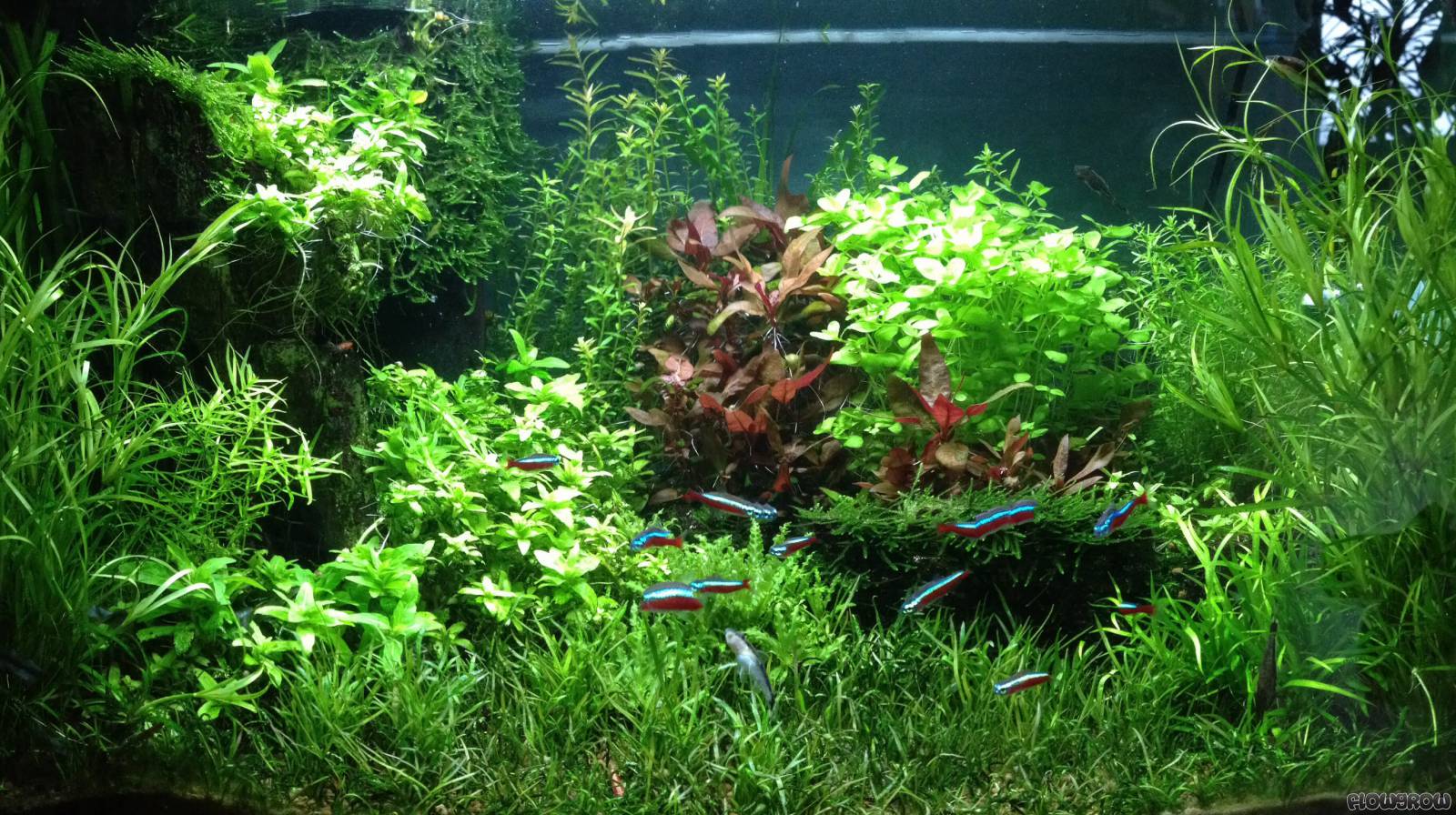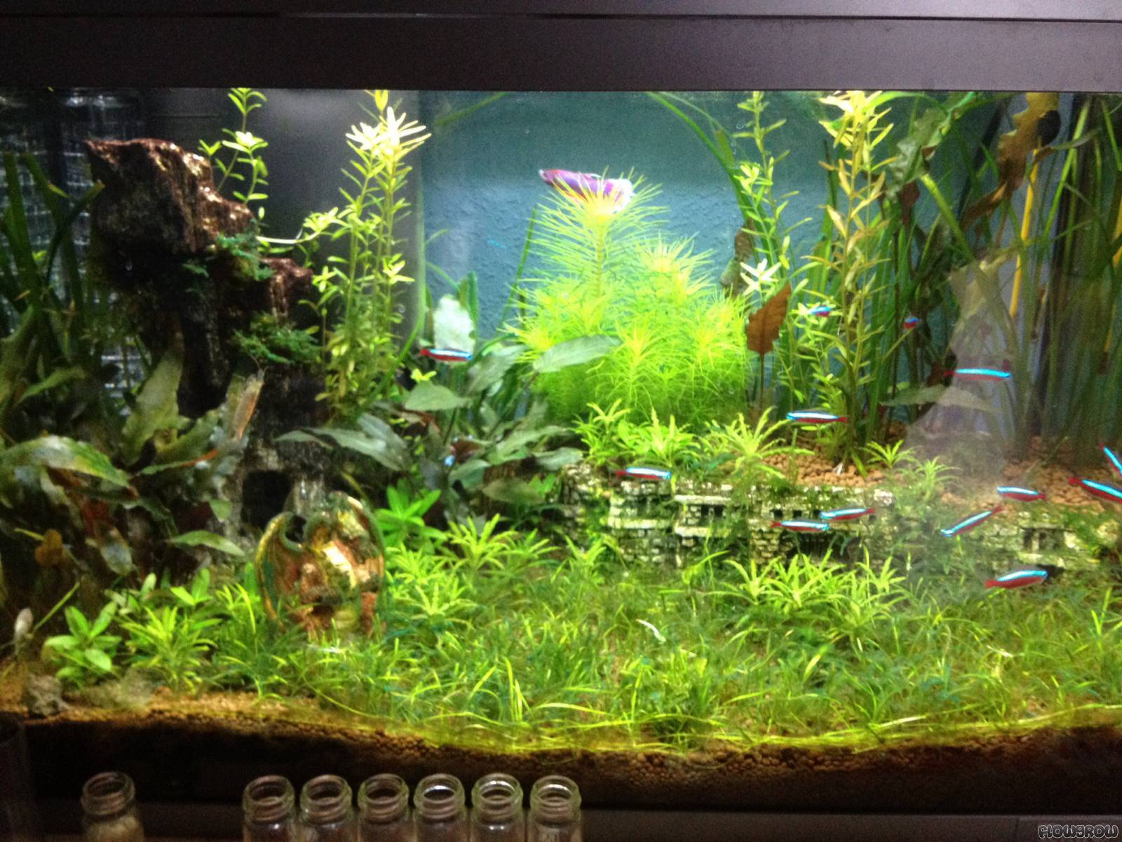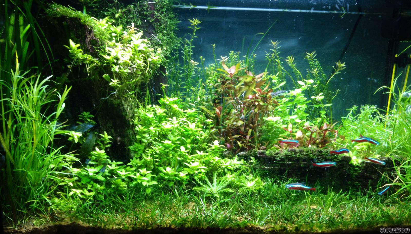 Momentan befindet es sich in einem desolaten Zustand. Da ich über Monate Probleme mit Fusselalgen an den Scheiben hatte habe ich für den Tetra Innenfilter das neue Filterflies mit Algenstop ausprobiert. Die Fusselalgen an den Scheiben traten danach wirklich nicht mehr auf, jedoch wuchsen auch meine Pflanzen nicht mehr. Dazu gesellten sich dann haufenweise GSA auf allen Pflanzen. Das Flies habe ich mittlerweile wieder durch ein normales ersetzt. Doch das GSA-Problem habe ich bis jetzt nicht mehr in den Griff bekommen.