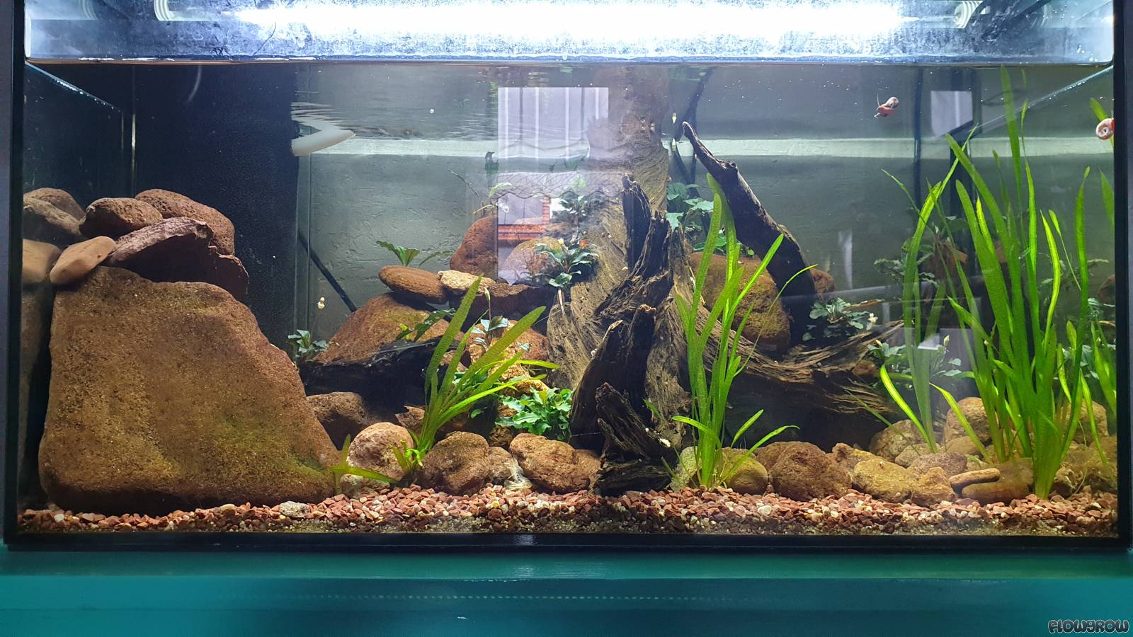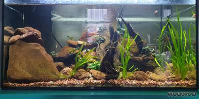 Ich wollt mal ein halbwegs "Biotop"-Aquarium gestalten und fand Pracht-Flossensauger (Sewellia lineolata) sehr spannend. Auch die Bucephalandra-Arten haben es mir angetan. Und so hab ich ein Ost/Süd-Ost-Asien Flussbecken gestaltet.