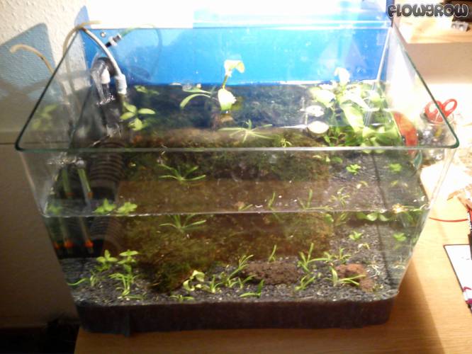 Januar 2014: Bodengrund übernommen (Kies) und einfach alles geflutet, Pflanzen haben sich zunächst gut umgestellt auf submers. Altwasseraquarium geplant.