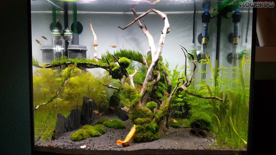 Angefangen hat das Ganze mit einem Fluval Edge, da ich für ein "normales" Becken keine Freigabe erhalten hätte. Besatz war auch klar, es sollten Garnelen sein. Als Anfänger kommen nur Red Fire in Frage. Die wiederum brauchen es grün und das Fluval Edge hatte ein massives Beleuchtungsproblem, also war der Handwerker gefragt und es wurden LED-Lösungen gefunden - aber immer mit einem minimalen Budget, da das Hobby Aquarium halt nur nebenbei läuft.. Irgendwann war das Becken zu klein und wurde ausgetauscht, aber immer mit dem Fokus "Keine Freigabe für große Becken" und "kein Budget". Diverse Umbauten später (u.a. Innenfliter, Außenfilter, HMF, Sonnensimulationen, etc.) war ein Lido 120 da. Meine Frau hat bis heute nicht verstanden was aus der Freigabe für ein Fluval Edge geworden ist.