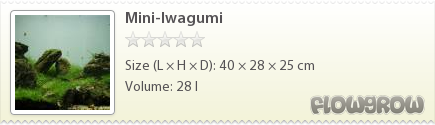 <a href="https://www.flowgrow.de/db/tanks/mini-iwagumi" target="_blank"><img alt="Mini-Iwagumi" title="Mini-Iwagumi" src="https://www.flowgrow.de/db/widget/tanks/mini-iwagumi" /></a>