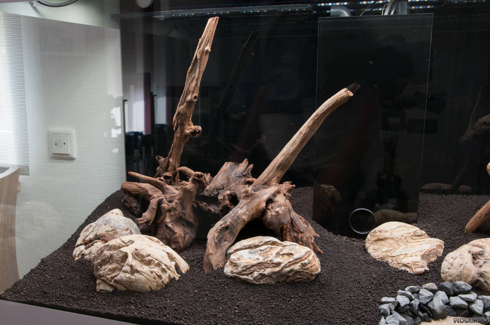 Mit seinen Wurzeln und diversen Cryptocorynen-Arten sind ausreichend Versteckmöglichkeiten gegeben, ein extra nichtbepflanzter feiner Sandbereich im Vordergrund wird als Gründel-Bereich gern von den (etwas scheuen) Panzerwelsen sehr gern angenommen.