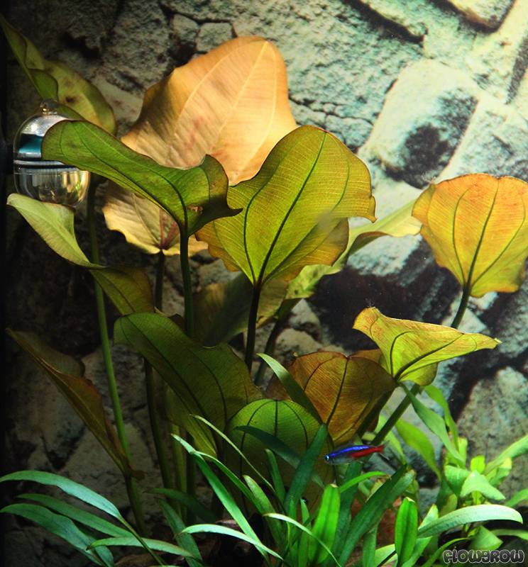 So wie auch andere Echinodorus-Sorten kommt Echinodorus 'Rosé' meistens in der emersen Form (Landform) in den Handel. Die Blätter sind dann deutlich länger (bis 45 cm) gestielt, grün gefärbt und derber.