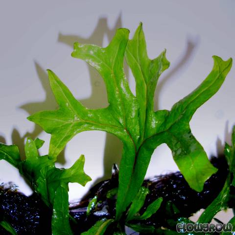 Diese neue Microsorium pteropus - Variante wurde erstmals durch Roland Strößner importiert, benannt und verbreitet. Der Wuchs ähnelt Microsorum pteropus "Trident", wobei die Blätter viel breiter werden, was die Unterscheidung einfach macht.