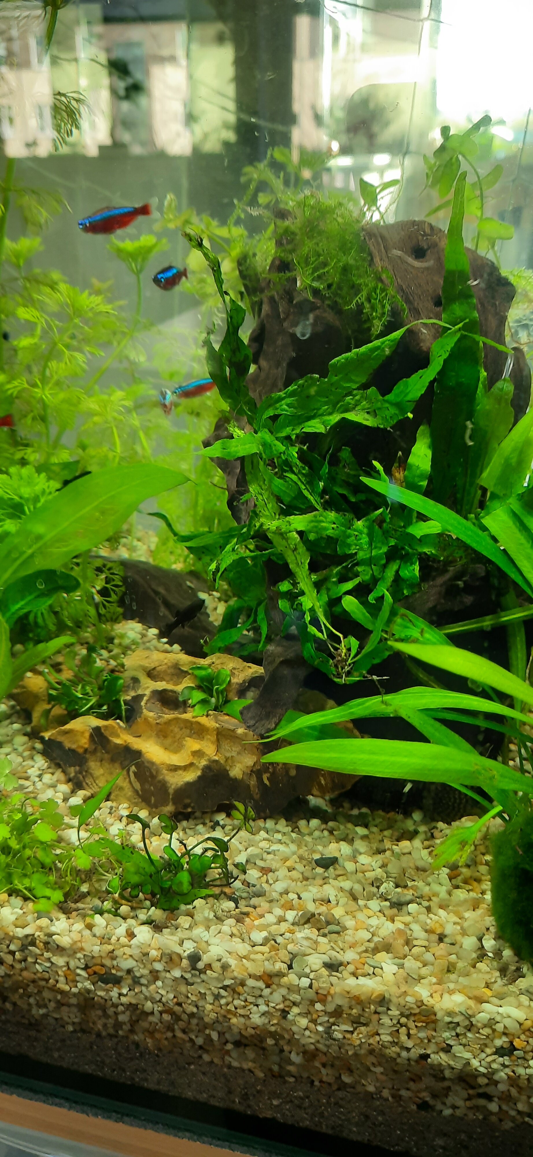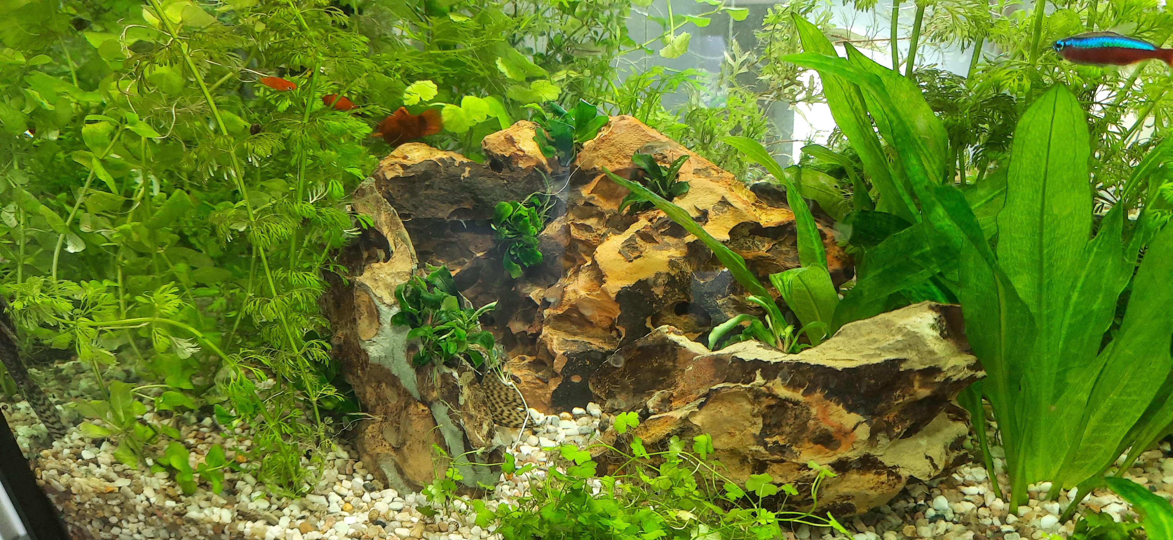 Aktuell habe ich folgendes im Becken verbaut/gepflanzt/herumschwimmen: