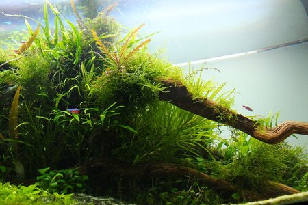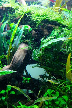 Die Pflanzen machen nach wie vor in der Regel keine Probleme. Die Wasserkelche und die Bucephalandras sind ein wenig von Nekrosen geplagt. Diesem Problem bin ich zur Zeit auf der Spur: Ich vermute, dass Phosphat mit irgendwelchen Mirkonährstoffen ungewollte Verbindungen eingeht und deswegen habe ich die Düngung ein wenig umgestellt: PO4 wird nach dem WW auf Stoß gedüngt und während der Woche nicht mehr. Und ich habe die tägliche Mikrodüngung etwas angehoben. Bin gespannt wie es sich entwickelt.