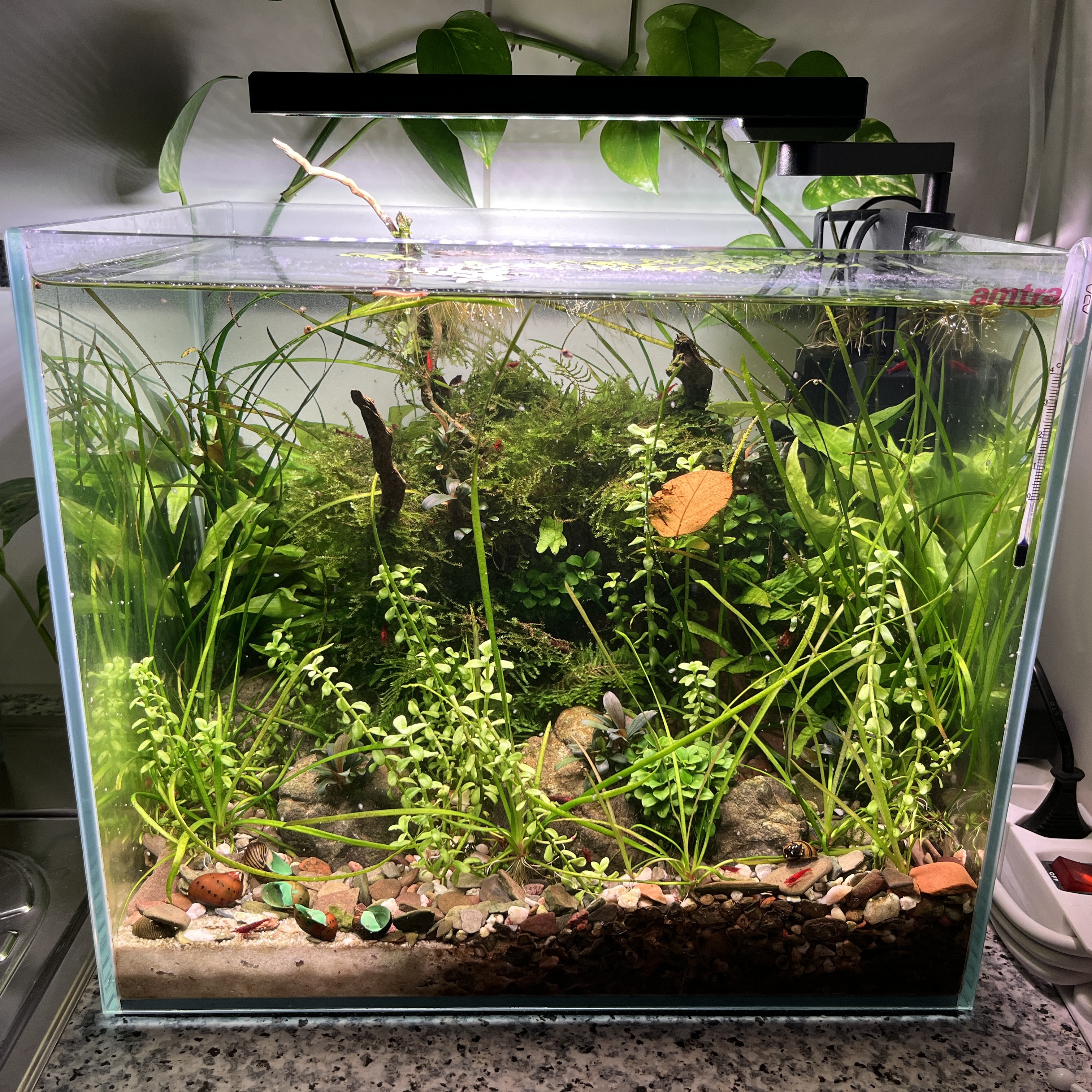 ich züchte aktuell meine Bloody Marys darin nach. Eigentlich wäre aber mein Ziel irgendwann Kardinals Garnelen darin zu halten, jedoch habe ich bisher keine gefunden.