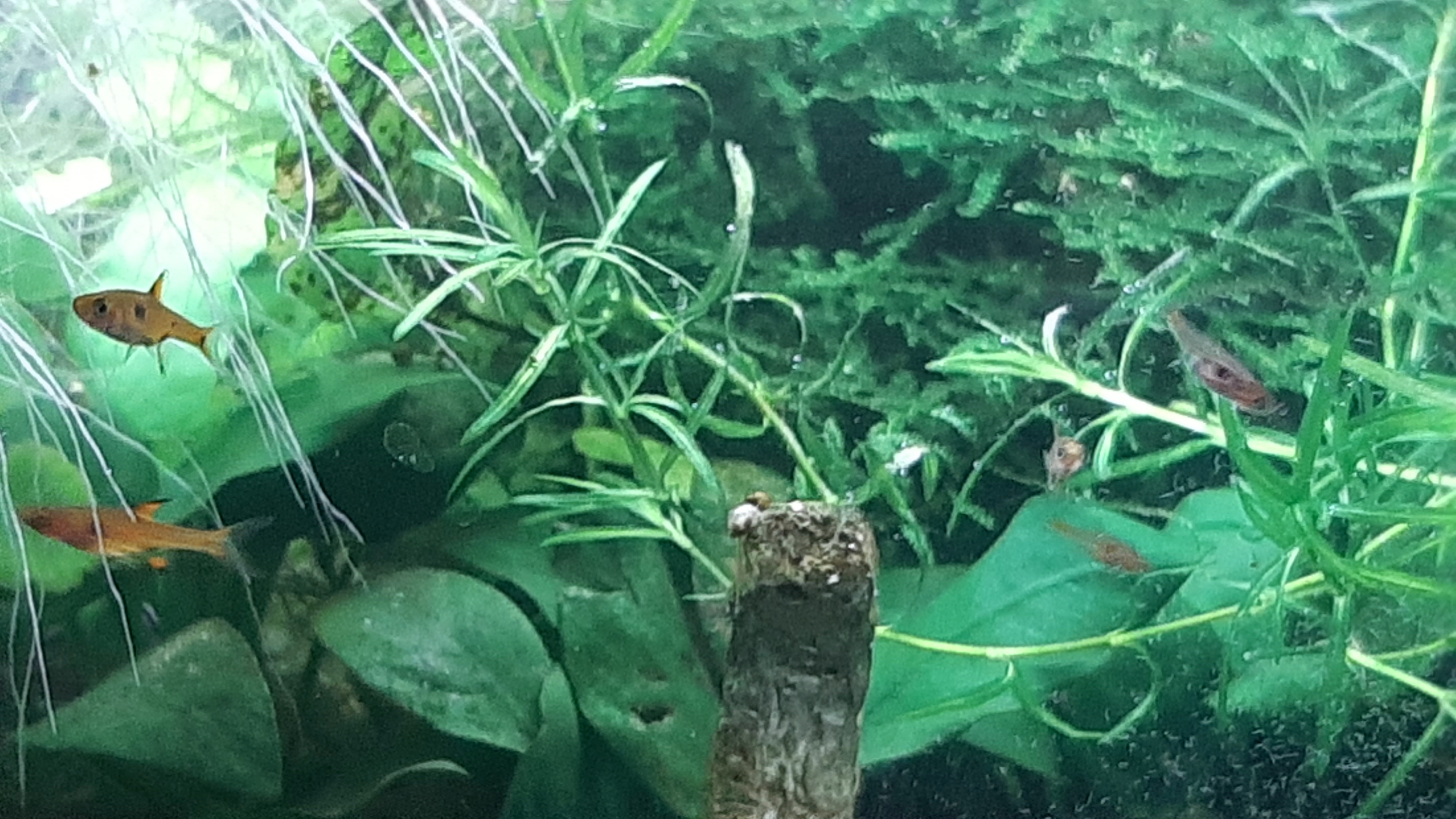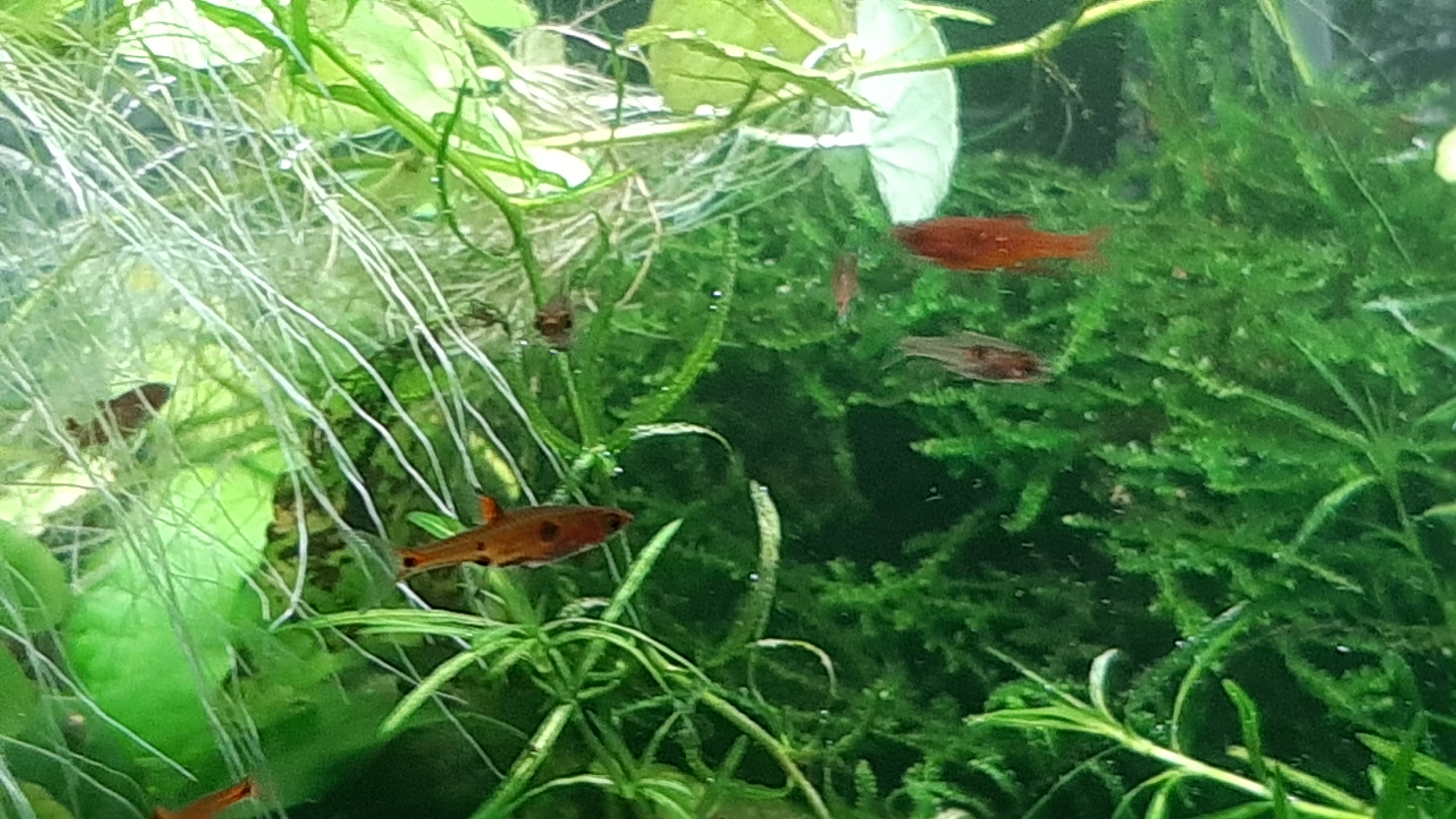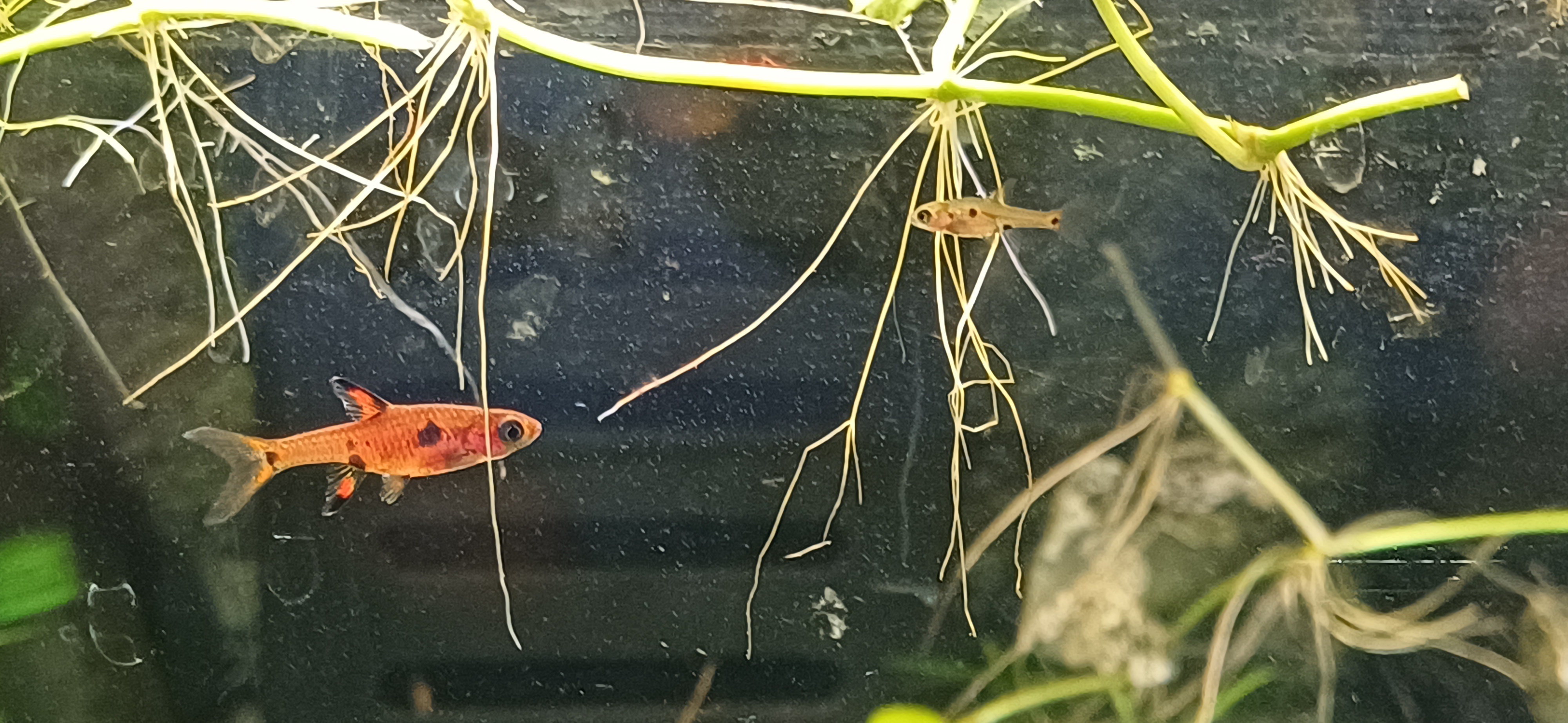 Gestern erschien, nach langer Zeit, mal wieder ein Jungfisch. Damit hatte ich überhaupt nicht gerechnet. Bisher war immer nach F1 Schluss mit Nachwuchs, was ich dem mittelharten Wasser zugerechnet habe. Ich schaue mal ob vielleicht noch etwas nach kommt.