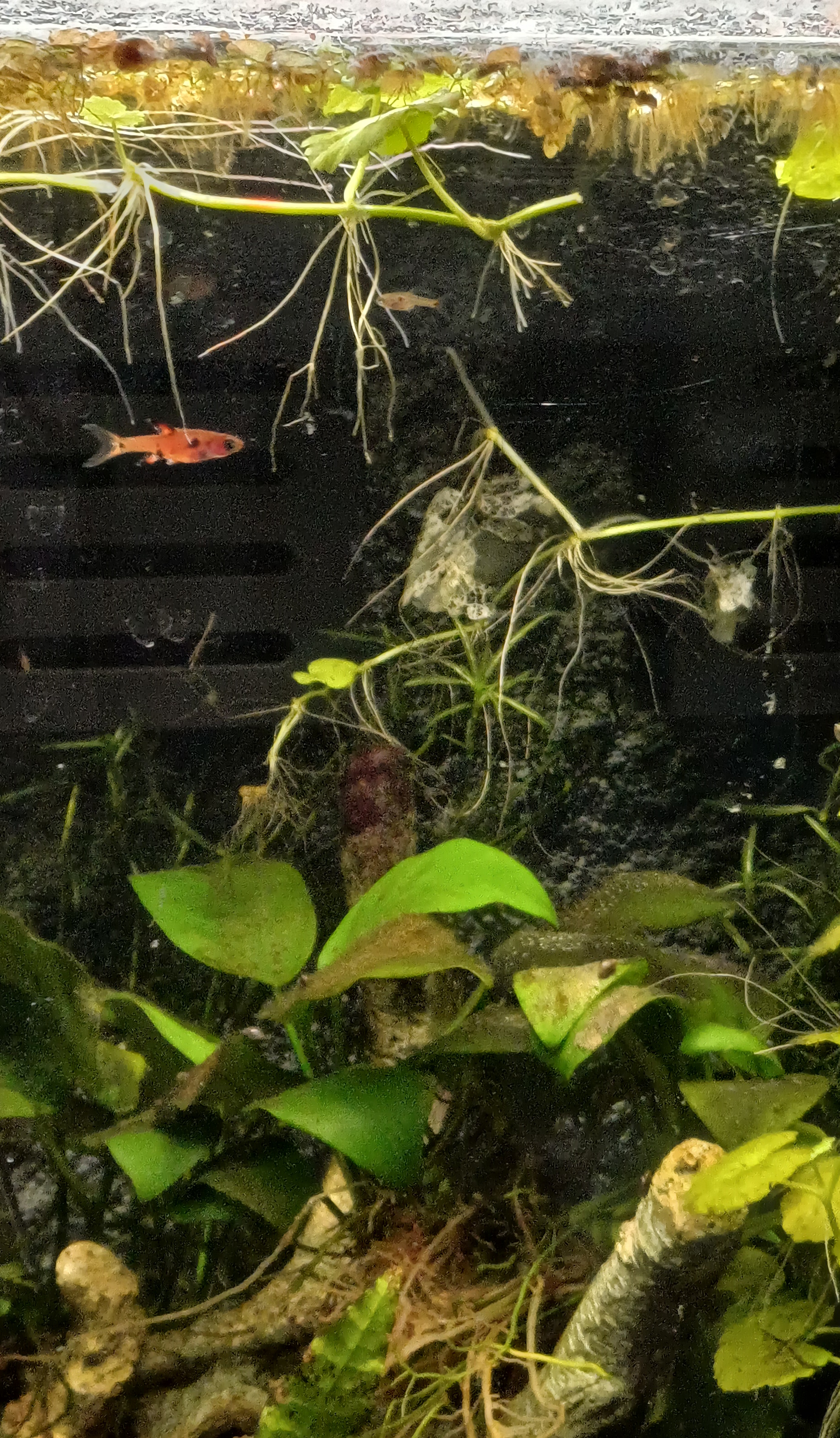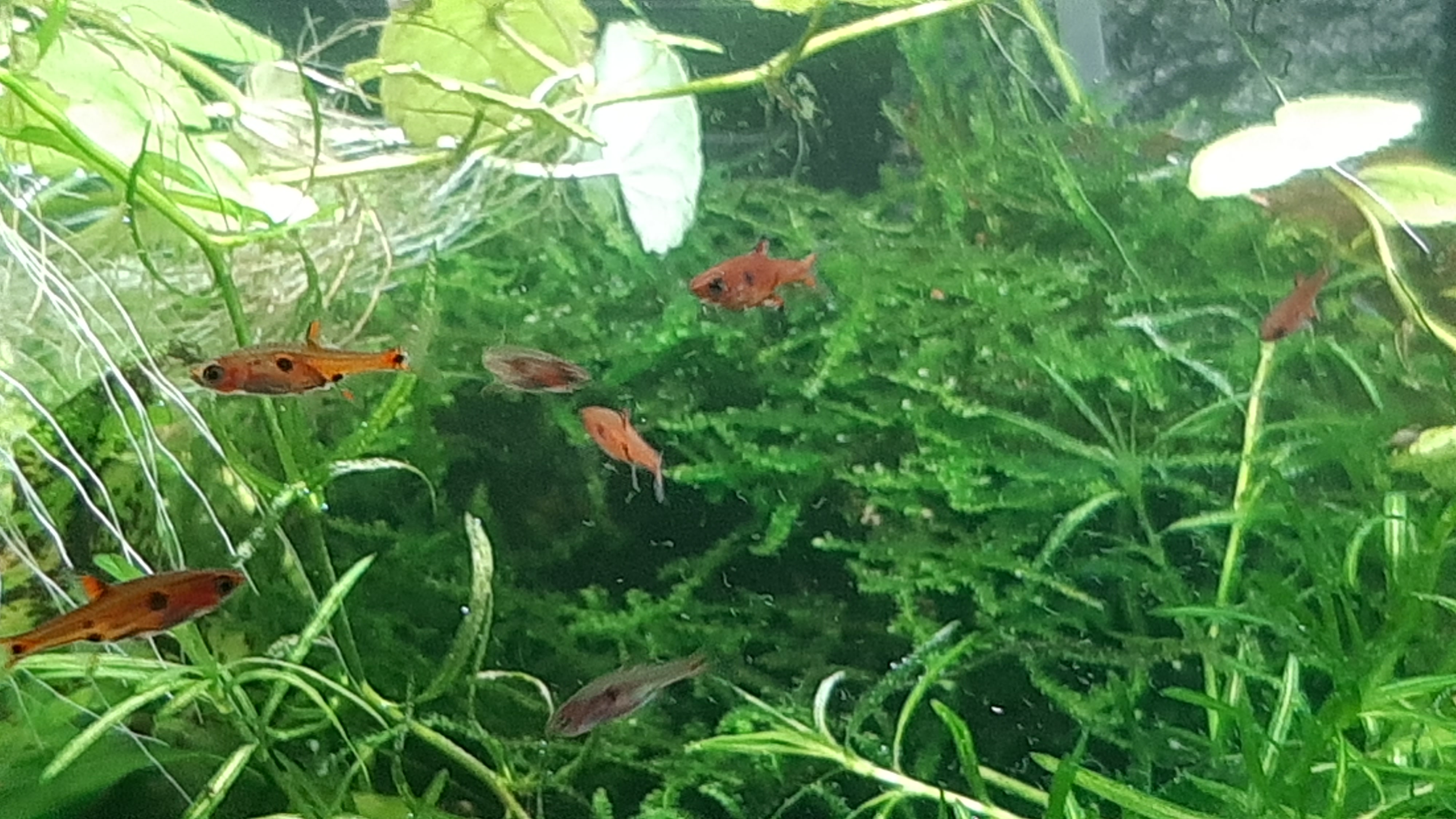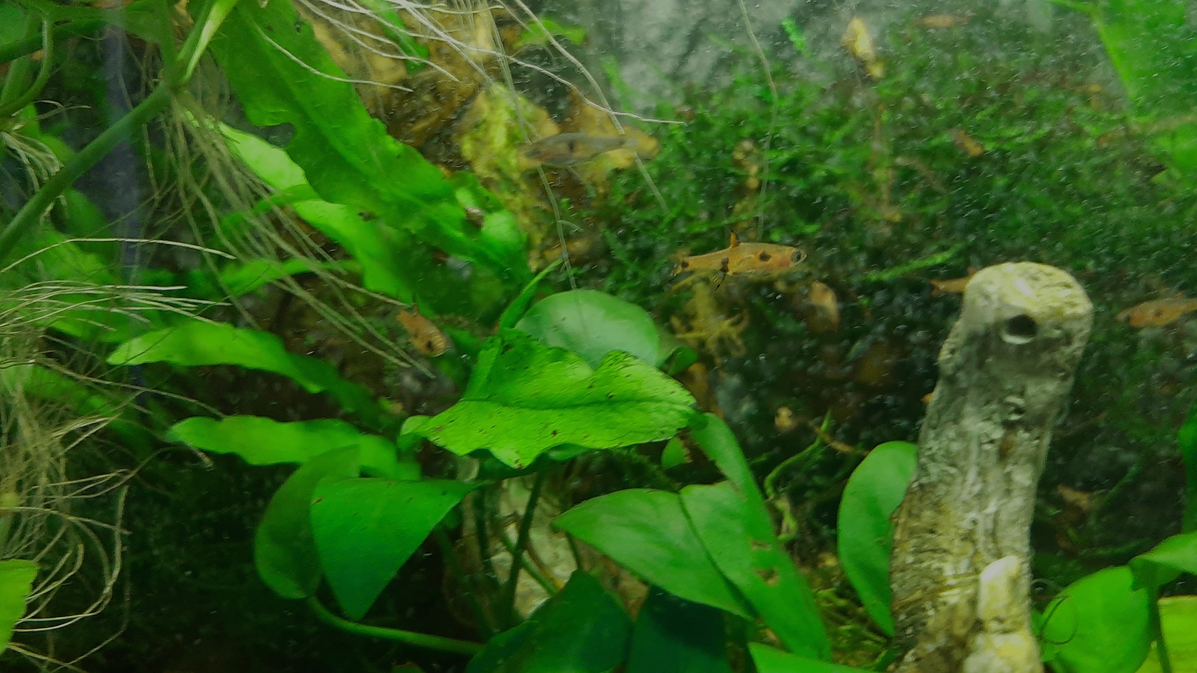 Gestern erschien, nach langer Zeit, mal wieder ein Jungfisch. Damit hatte ich überhaupt nicht gerechnet. Bisher war immer nach F1 Schluss mit Nachwuchs, was ich dem mittelharten Wasser zugerechnet habe. Ich schaue mal ob vielleicht noch etwas nach kommt.