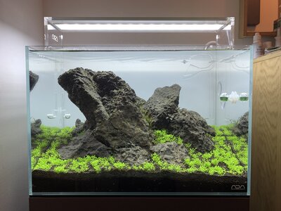 Untenstehend darf ich euch den derzeitigen Stand meines 45P Iwagumi präsentieren.