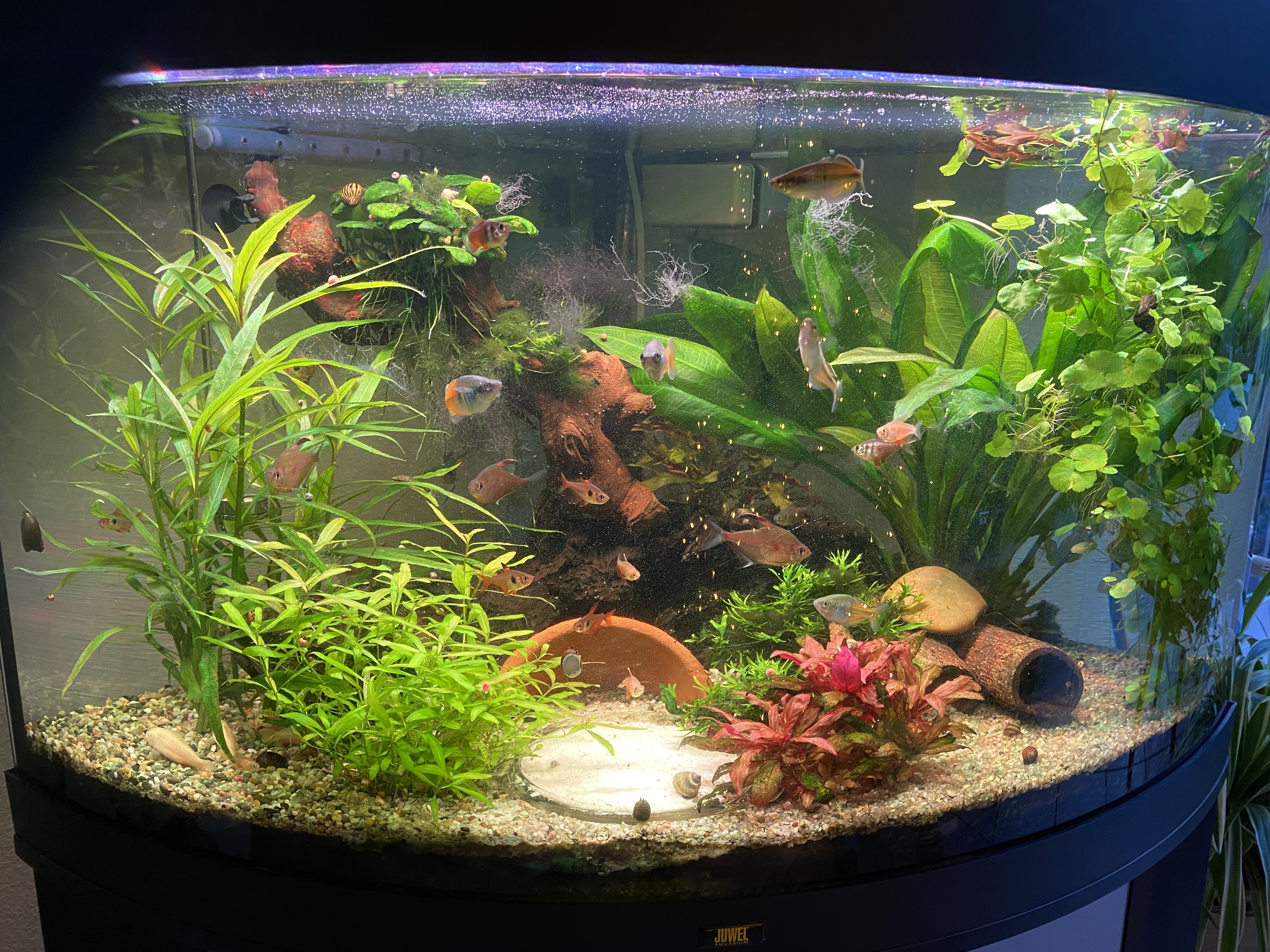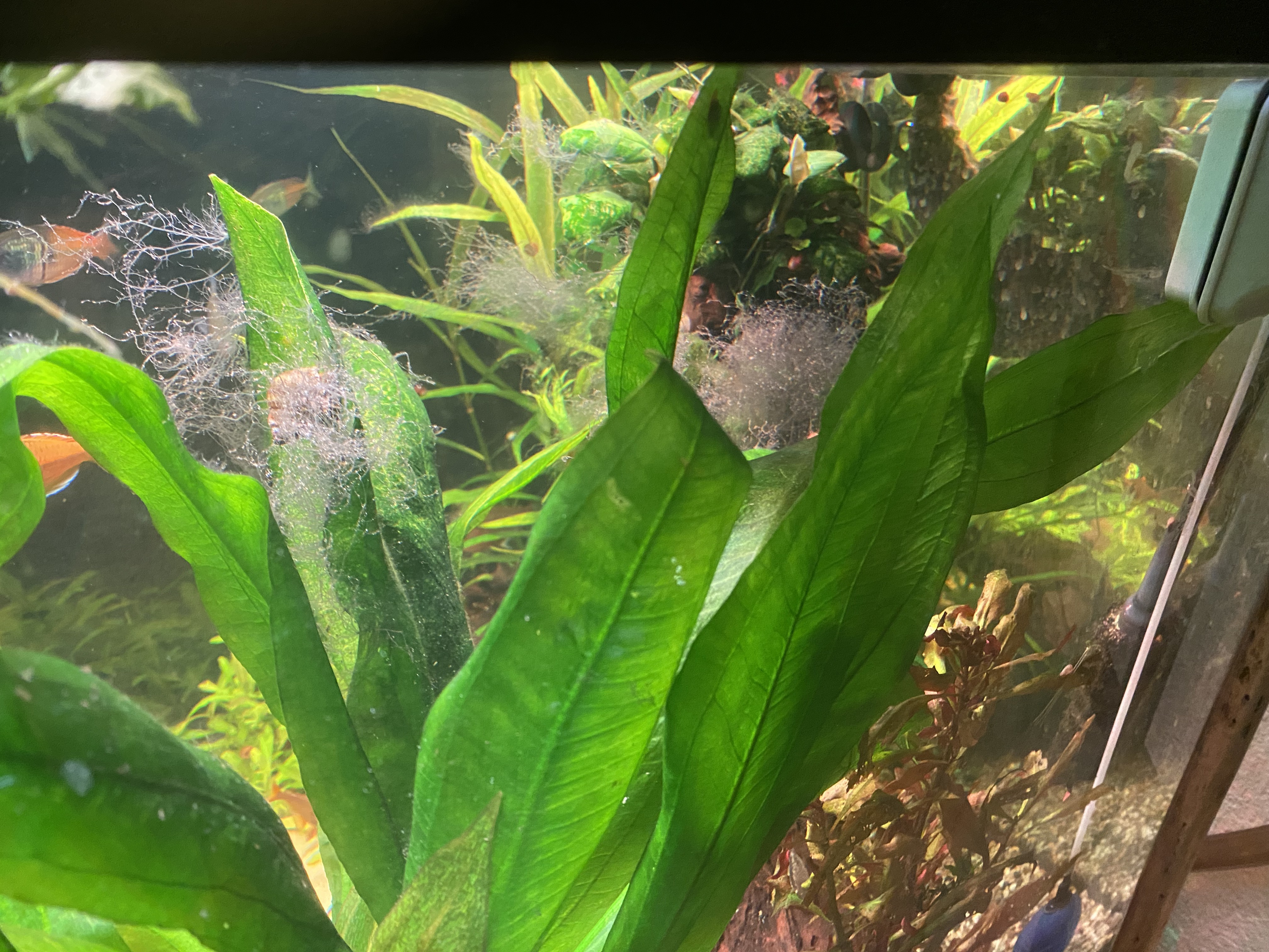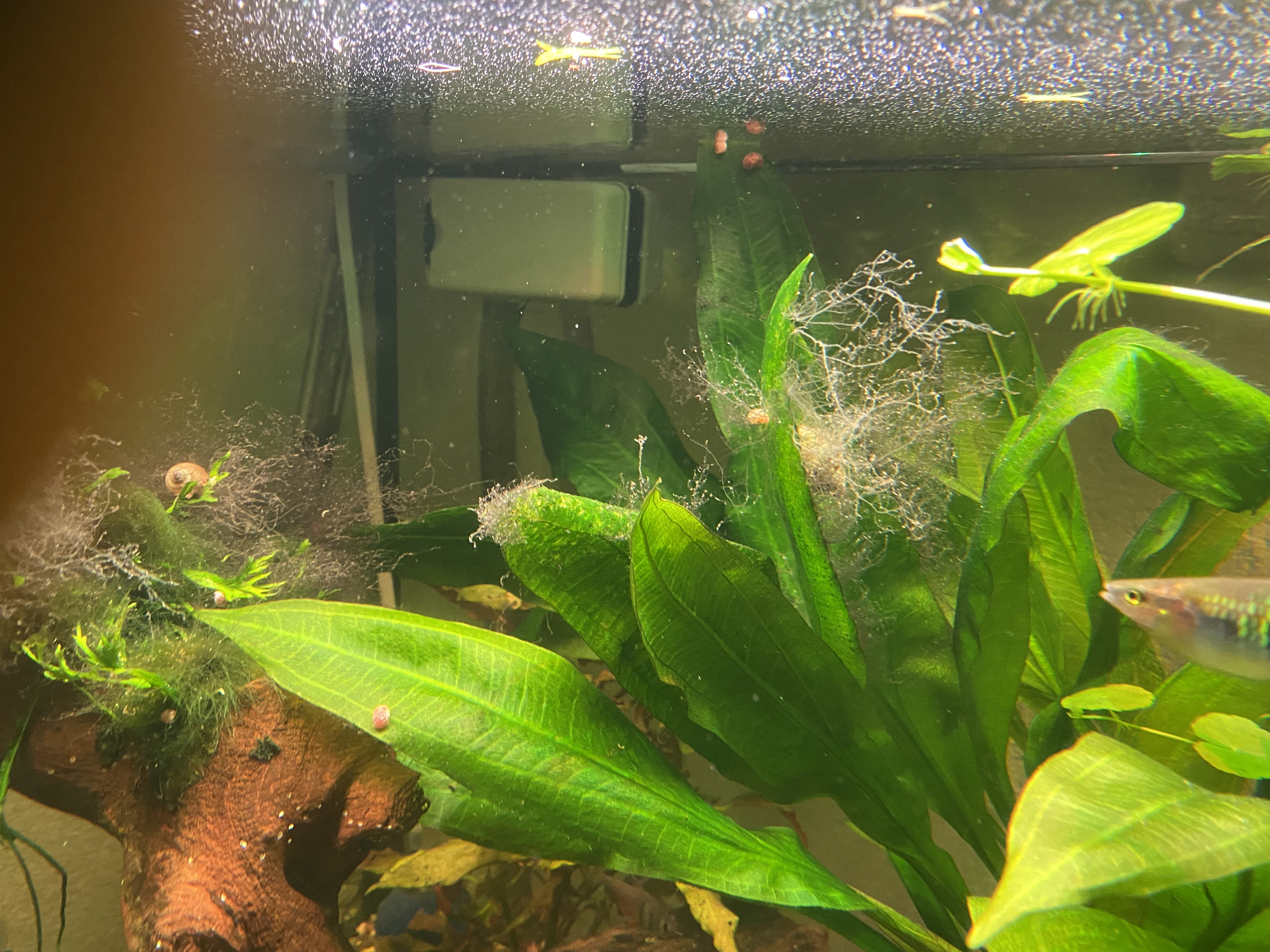 Ich habe ein JUWEL 190l Eckaquarium, mit Außenfilter Juwel800. Einige Jahre hatte ich das MULTILUX-Lichtsystem von JUWEL drauf. Mit sehr gutem Erfolg. Gutes Wachstum der Pflanzen, Fische fühlten sich wohl. Keine Algen!!! Der Besatz ist "normal", nicht zu viel. Zu Weihnachten gab es dann das HELIALUX SPECTRUM mit Controller. Ich habe es so laufen lassen, noch nicht so viel experimentiert, mit Sonnenauf- und Untergängen und Farbspiel. Es läuft so gute 10 Stunden. Mittagspause 2 Std. nicht mit eingerechnet. Jetzt auf einmal habe ich an vielen Stellen ALGEN... Ich weiß nicht, wie ich die weg bekommen soll, ohne Chemie. Ich habe keine Düngung vorgenommen. CO2 läuft 10 Std bei 50 Bläschen in der Minute. Ich habe auch noch ein paar schicke Schnecken dazu gekauft, die sind schon 1/2 Jahr dort und gut genährt. Wenn ich jetzt Chemie rein gebe, gegen diese Algen (siehe FOTOs), habe ich bestimmt die Schnecken auf dem Gewissen. Weil auch andere Algen abgebaut werden, von denen die leben. BIN RATLOS..