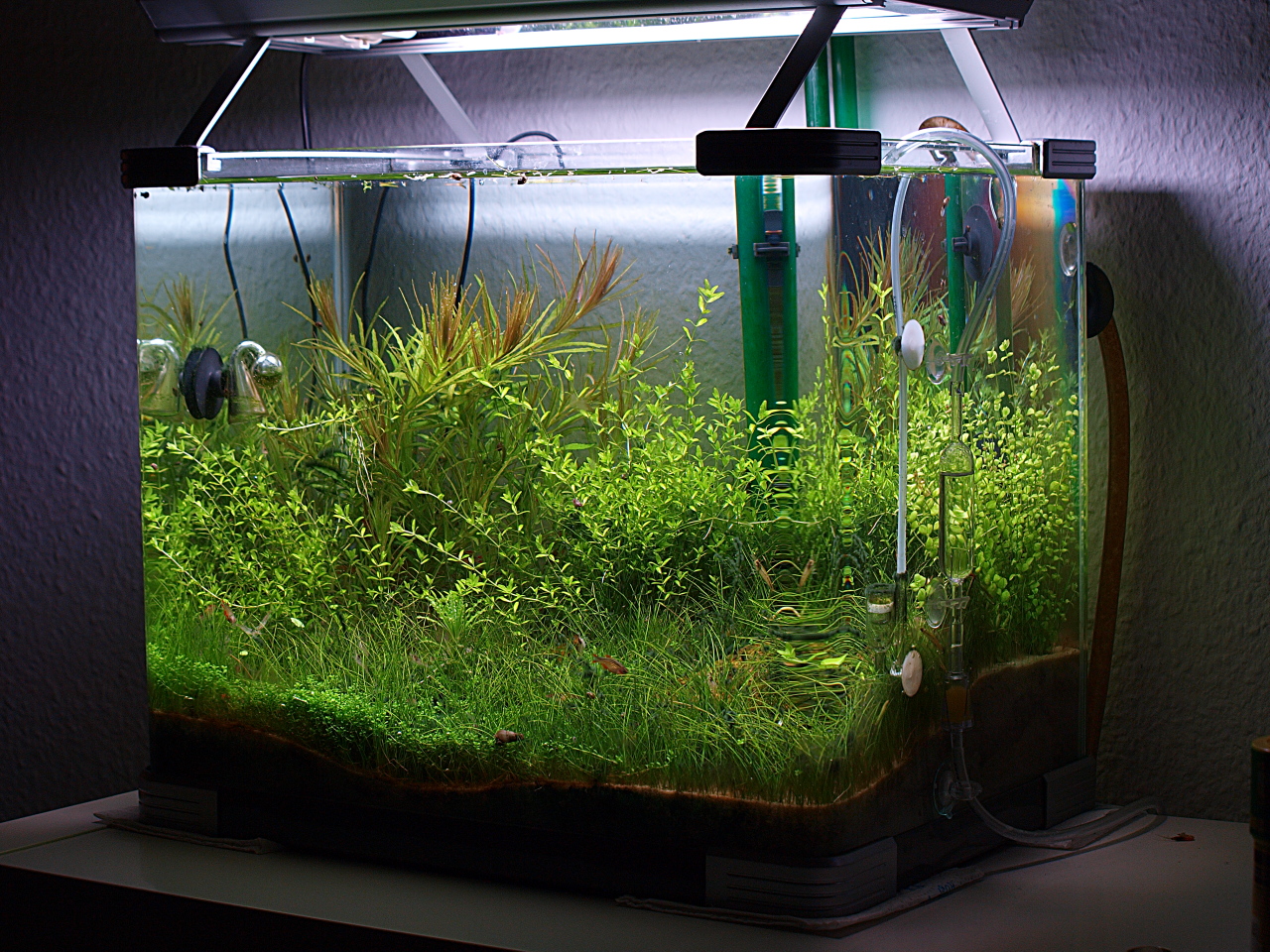 Der Pflanzenwuchs ist soweit okay. Tendenziell sterben ältere Blätter in dunkleren Bereichen verhältnismäßig schnell ab.