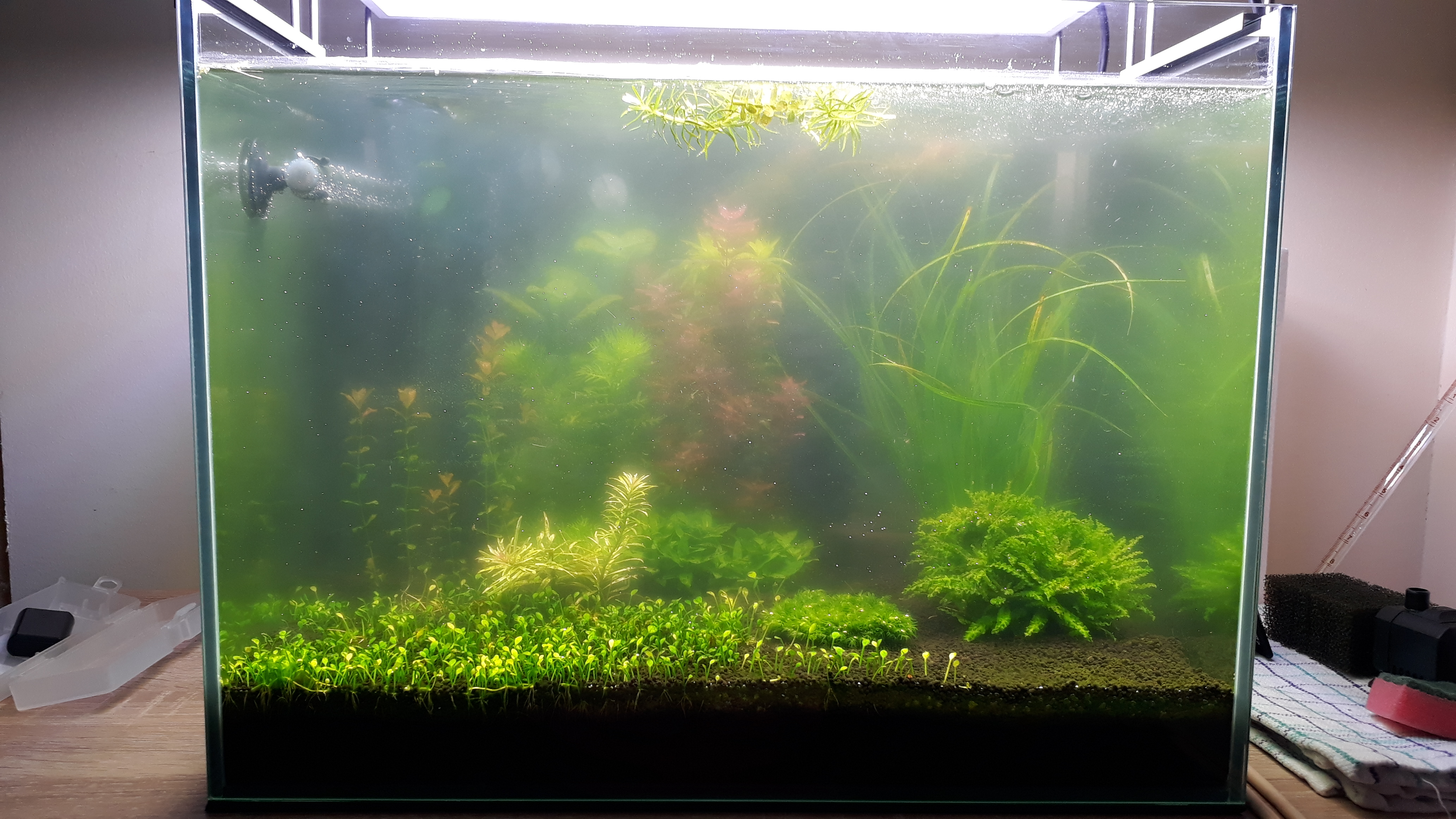ich habe seit Oktober Probleme mit meinem Pflanzenbecken. Erst wurden die Scheiben grün (Staubalgen?), später wurde das ganze Wasser teils milchig trüb (Bakterienblüte?) und zum teil grünlich trüb (Algenblüte?). Auf den Pflanzenblättern (nur bei Pflanzen mit breiten Blättern) bildeten sich dunkelgrüne bis braune "Würste", da keine Tiere drin sind, MUSS es ja von den Algen kommen (evtl. Ablagerungen?). Habe zuerst jeden Tag Wasserwechsel gemacht, es half nichts. Dann habe ich einen kleinen UVC Klärer gekauft, es half nichts. Dann habe ich AlgExit reingekippt, es half nichts. Zuletzt eine Dunkelkur gemacht, das Wasser war wieder kristallklar doch jetzt fängt es wieder an, die Scheiben werden wieder grün. Habe verschiedene Dünger ausprobiert (AR Basic Eisen, AR NPK, AR GH Boost N, AR Phosphat, AR Flowgrow, Masterline AllInOne, Vimi All in one Red).