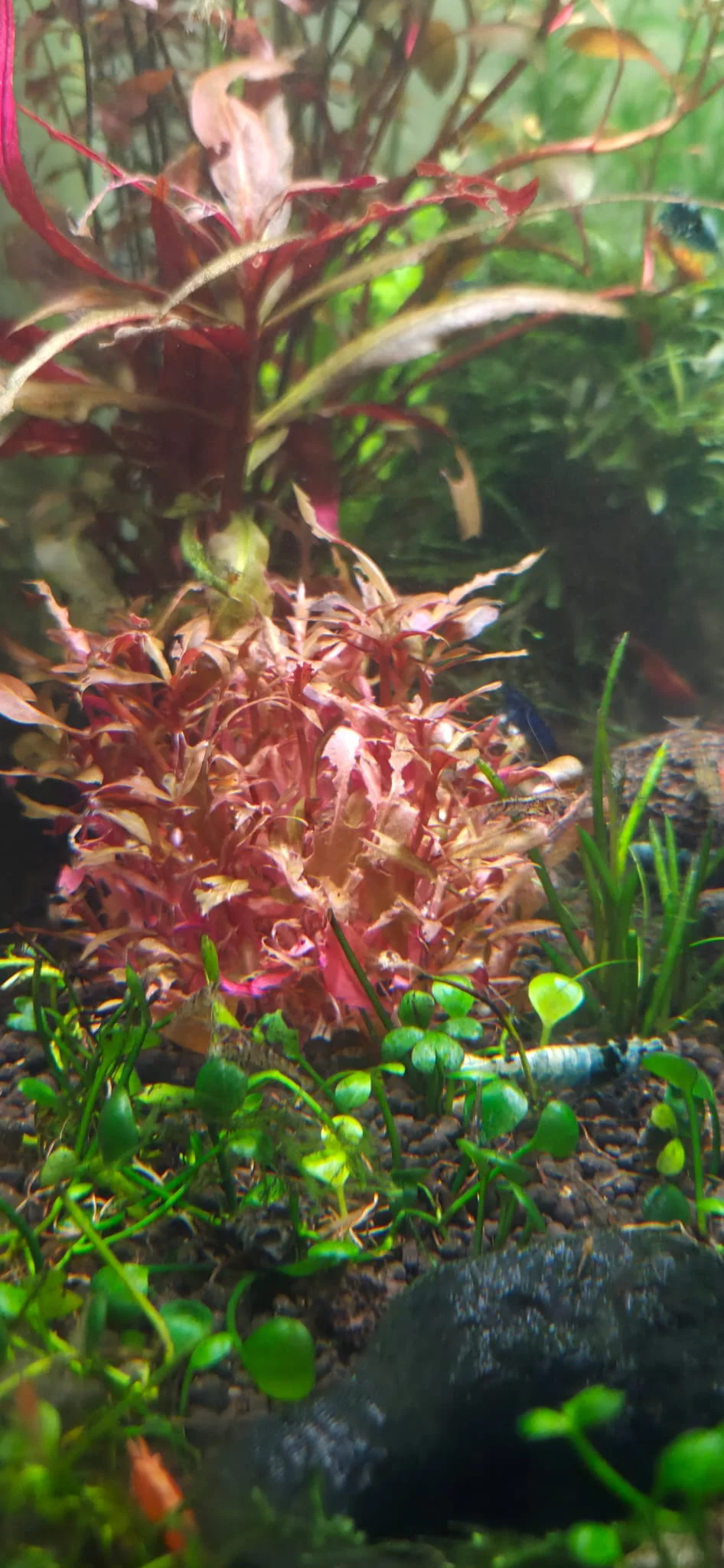- Die Alternanthera Mini sähe so aus, als würden meine Caridina-Garnelen sie fressen.