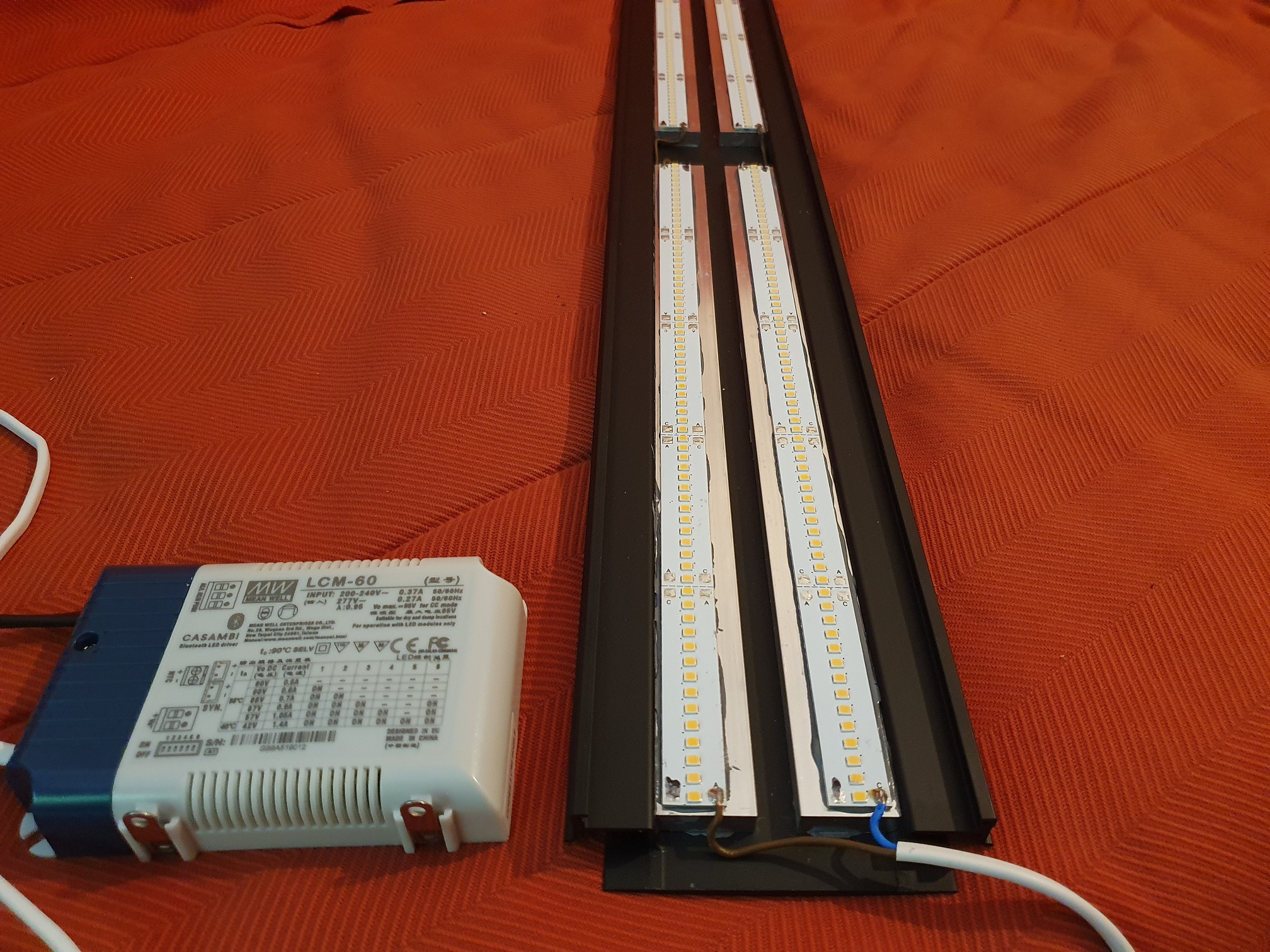 Sehr gespannt war ich auf das "BLE" des Treibers. Der Aufpreis ist mit ca. 60 € ggü. dem normalen LCM-60 echt heftig, das Casambi-Modul mit der Möglichkeit zur Zeit- und Dimmsteuerung per App war aber zu verlockend - kein Gefrickel mit Netzteil, separater Steuerung und dimmbarer KSQ!