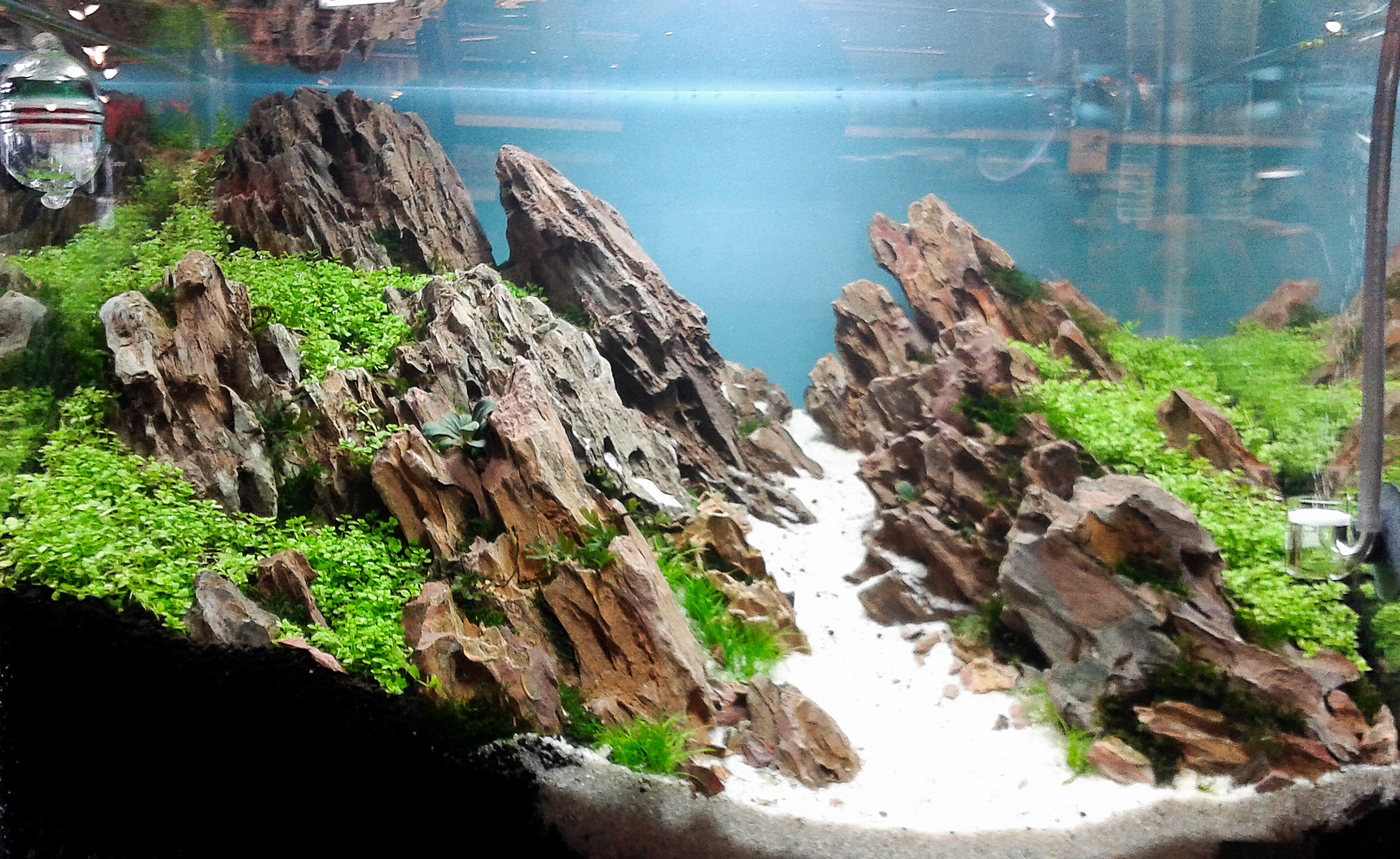 “Das nächste Foto zeigt das Layout auf seinem Höhepunkt. So wurde das Becken auf der Zoomesse Interzoo 2014 auf dem Stand der Firma Dennerle ausgestellt. Außerdem erzielte dieses Foto (Danke Georg Just) beim IAPLC Platz 139 und beim AGA einen Top10 Platz. Abgesehen davon, dass ich an dem Layout von Anfang bis Ende meine Freude hatte, war es also auch recht erfolgreich.” :wink: