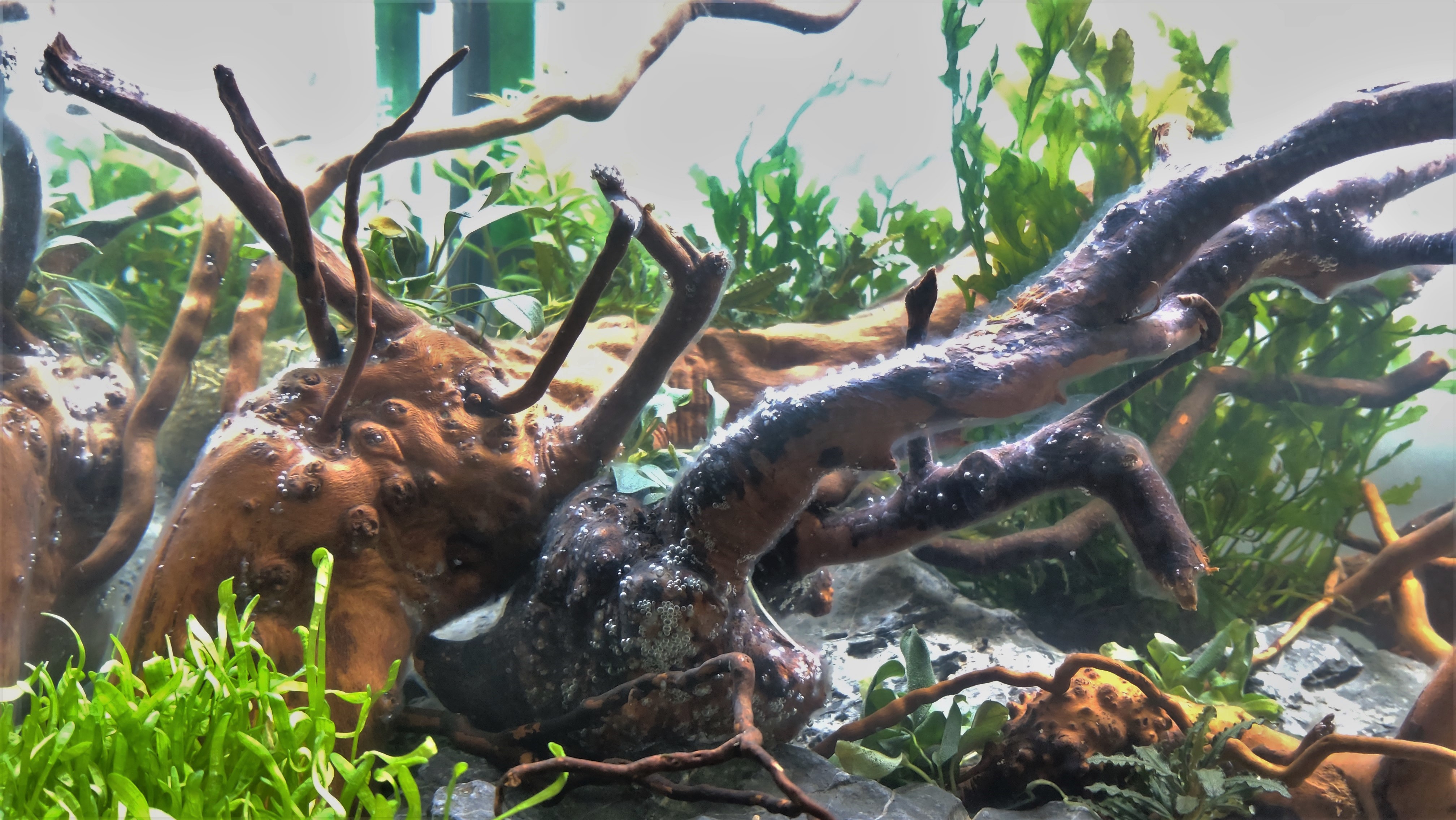 Ganz besonders in Mitleidenschaft gezogen wurden die "Melawi Fine Edge" Bucen. Entweder packen sie die Umstellung auf submers nur ganz schlecht, oder sie können den Bakterienflausch nicht ab. Bei der Auflösung konnte man ihnen zuschauen, mir blutet das Herz, obwohl man an vielen Pflanzen auch neuen Austrieb sehen kann.