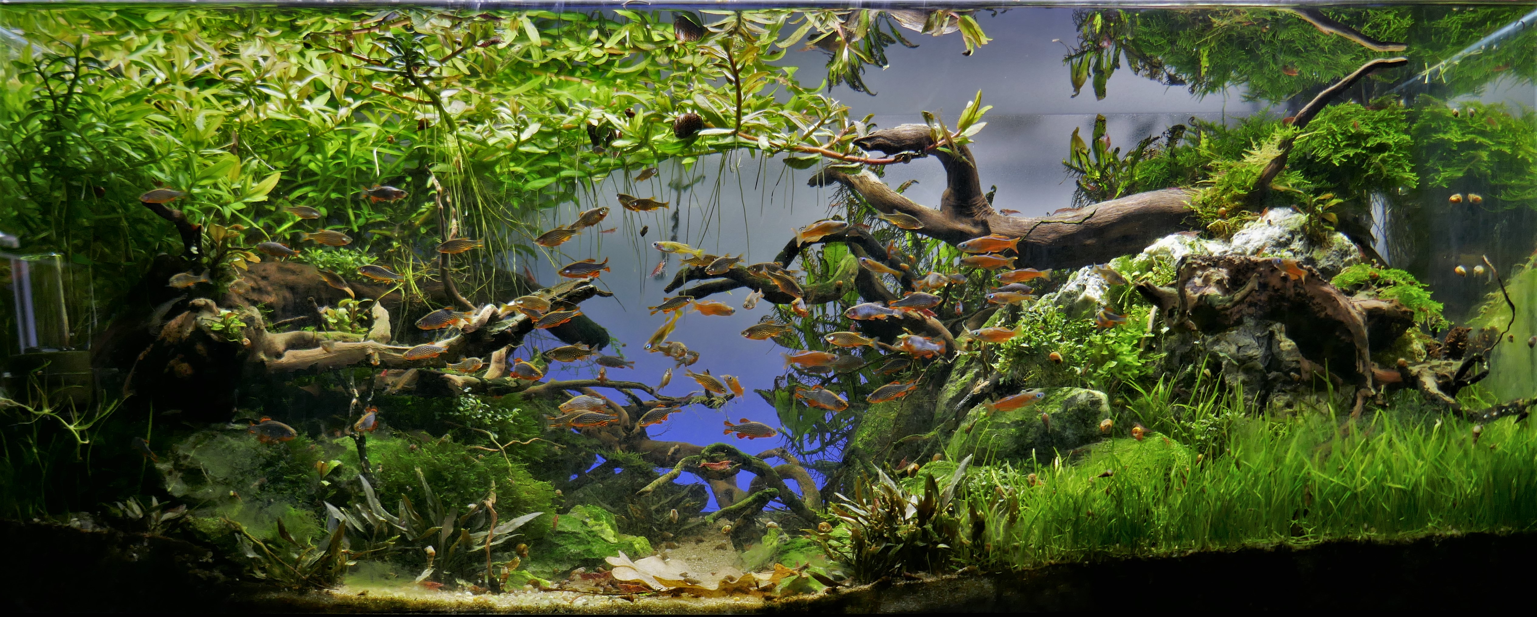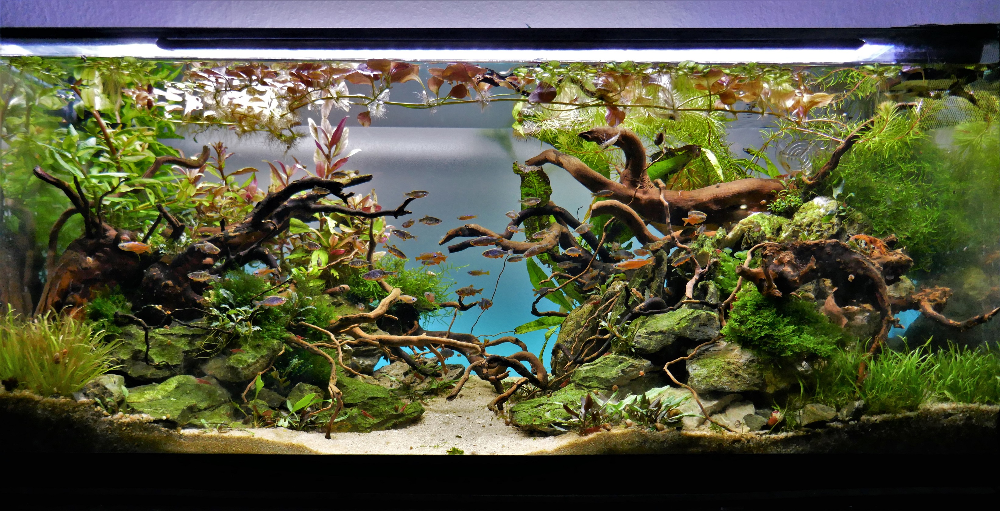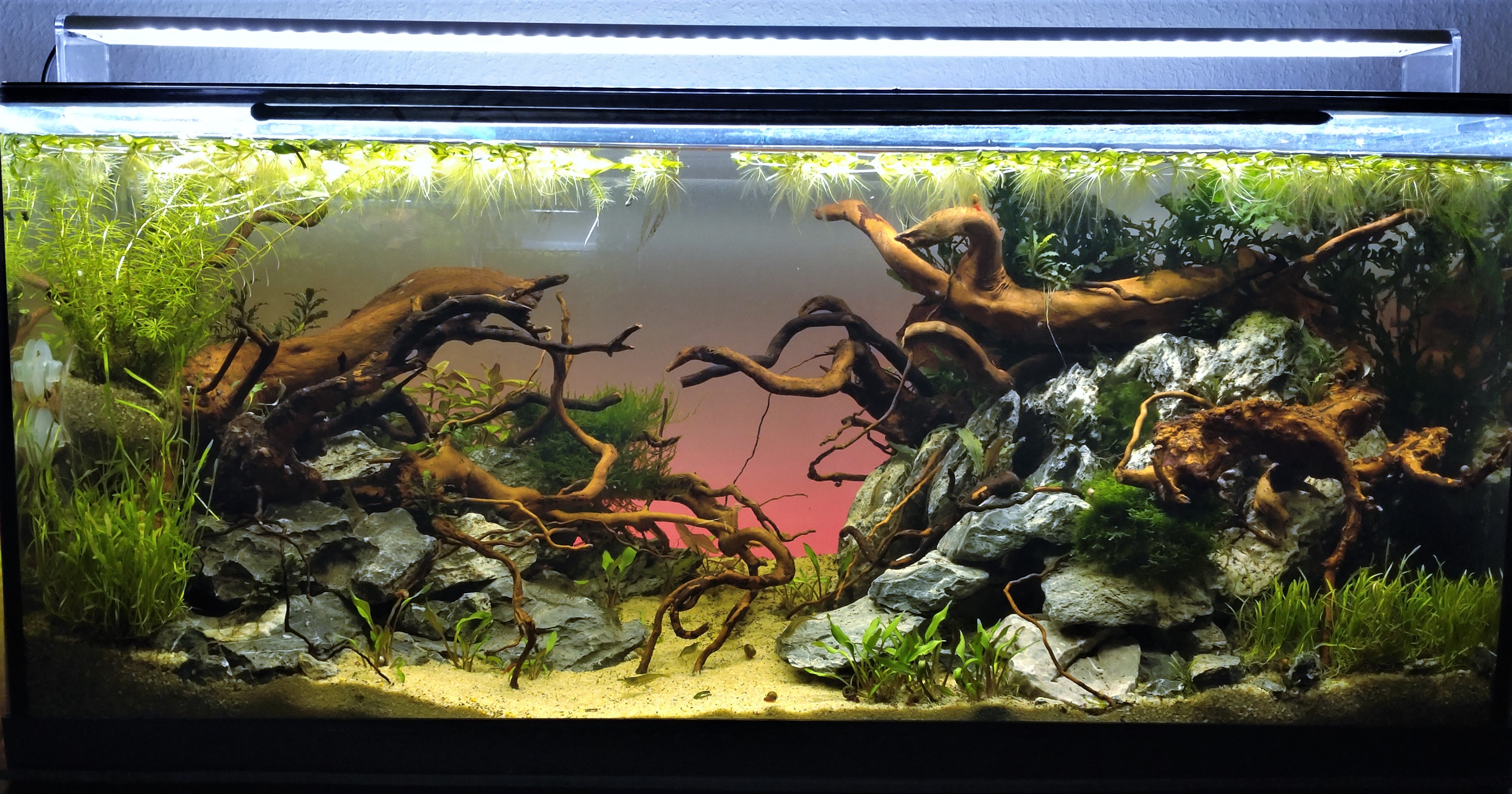 Natürlich ist es noch weit davon entfernt, das zu sein was ich mir vorstelle. Aber der Weg dahin stimmt schon mal. Hintergrundbeleuchtung, neue In- und Outflows von Neoflow sowie noch ein Pflänzchen hier und da kamen hinzu, sowie der erste Testbesatz aus einer Handvoll Amanos.