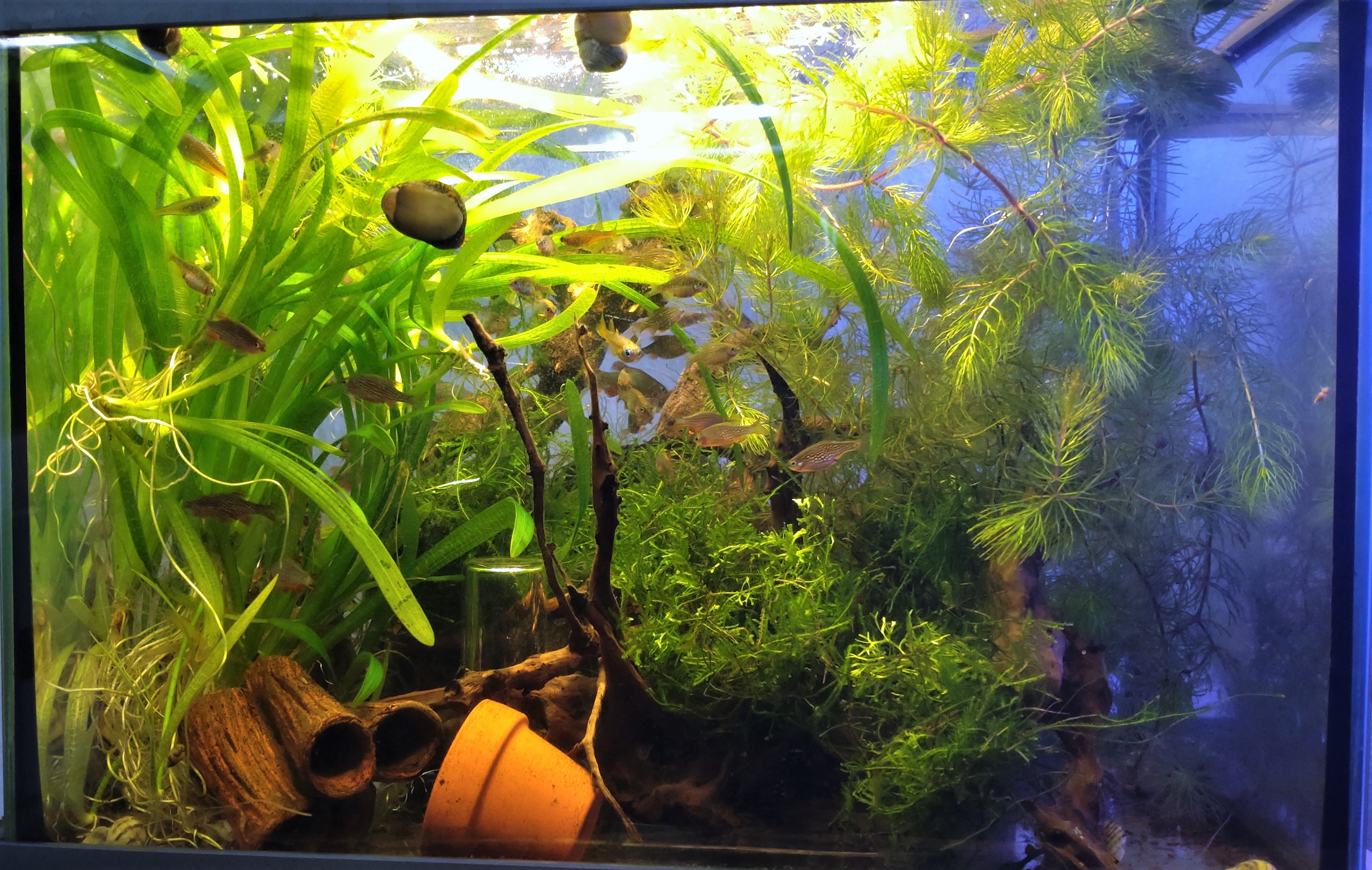Die Perlhühner und Blauaugen müssen noch etwas länger im Asyl fristen. Aber bis jetzt hatte ich da, trotz des enormen Besatzes auf 20l, noch keine Verluste.