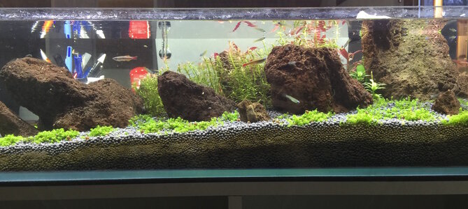 Je nach Bepflanzung (oder gewünschter Ansicht) kannst du in die Richtung von der Wandseite weg an beiden "Bergen" evtl. noch die ein oder anderen feineren Wurzelstückchen einbauen, die der Gesamtansicht noch ein bisschen mehr Dynamik von Wand nach Stirnseite verleihen sollten.