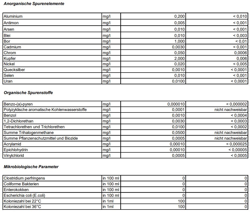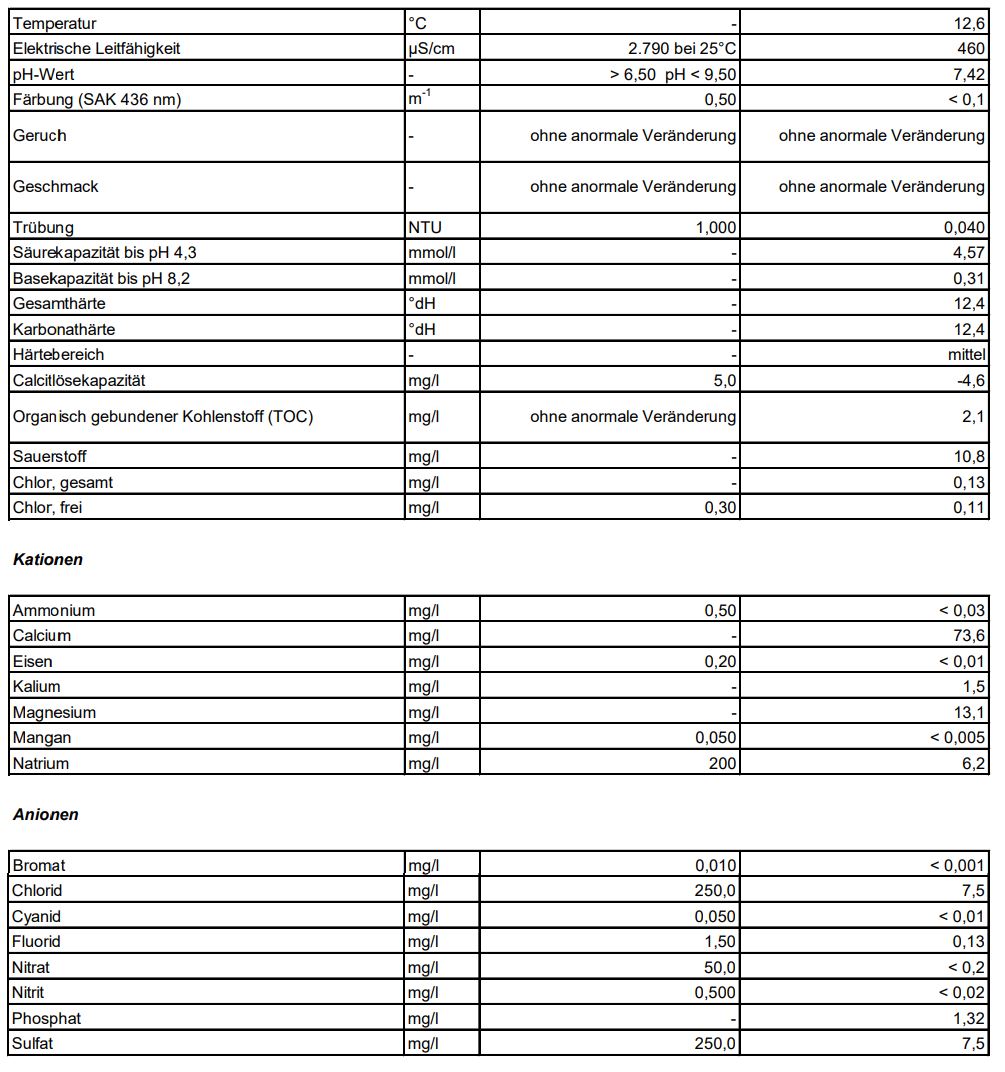 Meine Leitungswasserwerte: