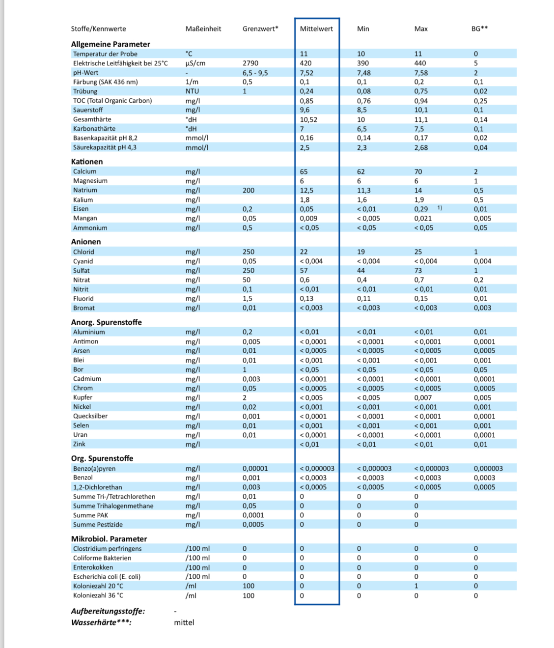 Das habe ich herausbekommenDu hast uns bislang noch keine Werte deines Wasserversorgers mitgeteilt,