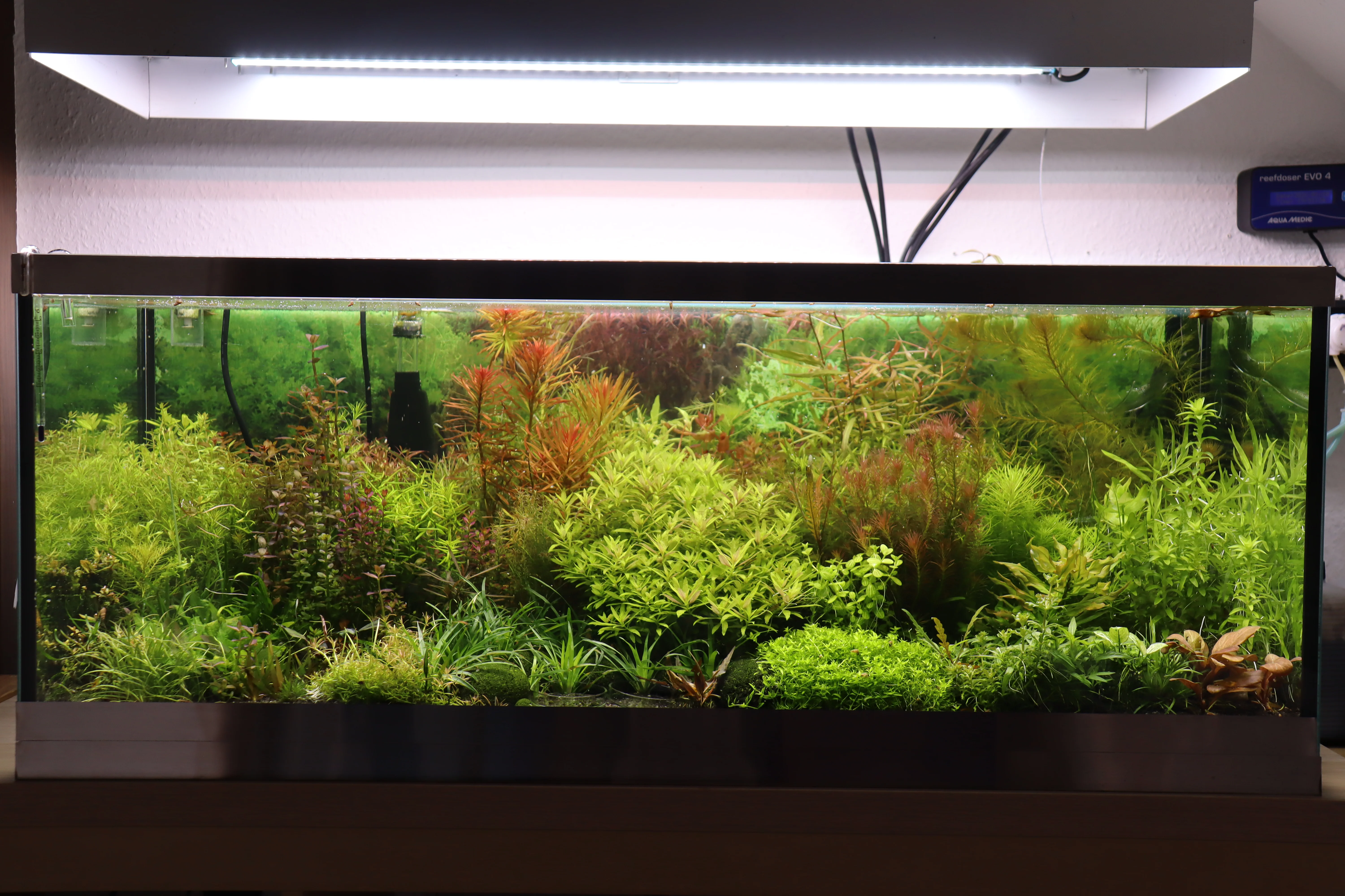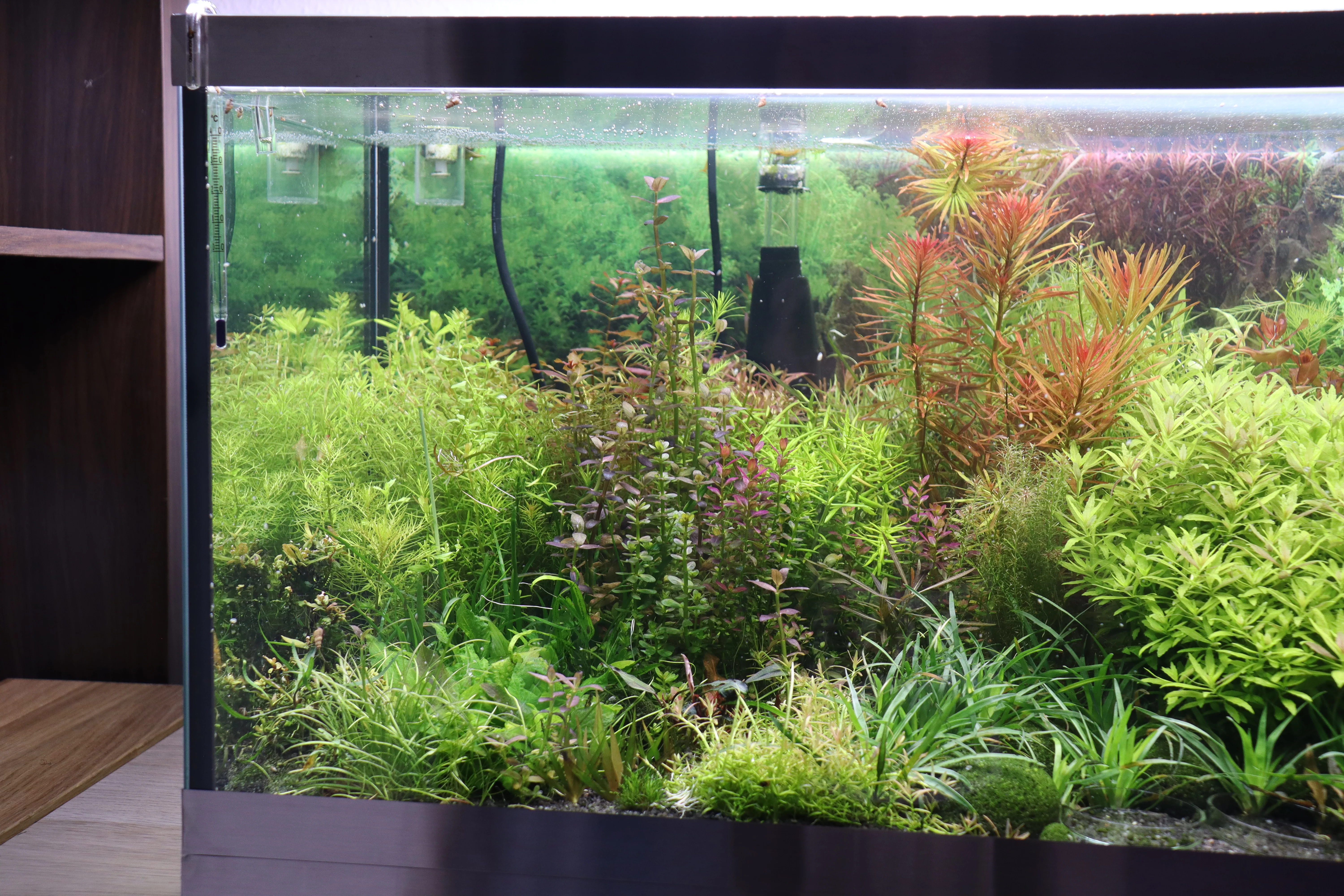 Besatz 4 uralte Vietnamesische Kardinalsfische + Orange Tiger Garnelen und Turmdeckelschnecken. Eisen 0,1 mg/L Nitrat 20 mg/L Phosphat 0,3mg/L Kalium 7 mg/L