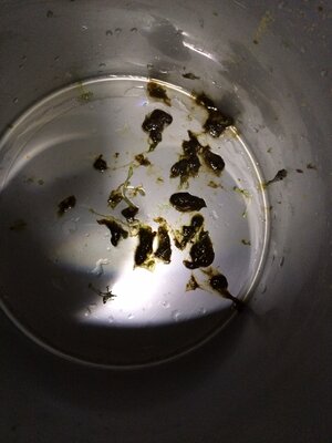 Doch die, sagen wir mal, "ausgewachsenen", fetten Fadenalgen, und die unzähligen Wattealgen schaffen die Amanos natürlich nicht. Diese muss ich erstmal "zerlegen" um sie den Tieren als verwertbar anbieten zu können.