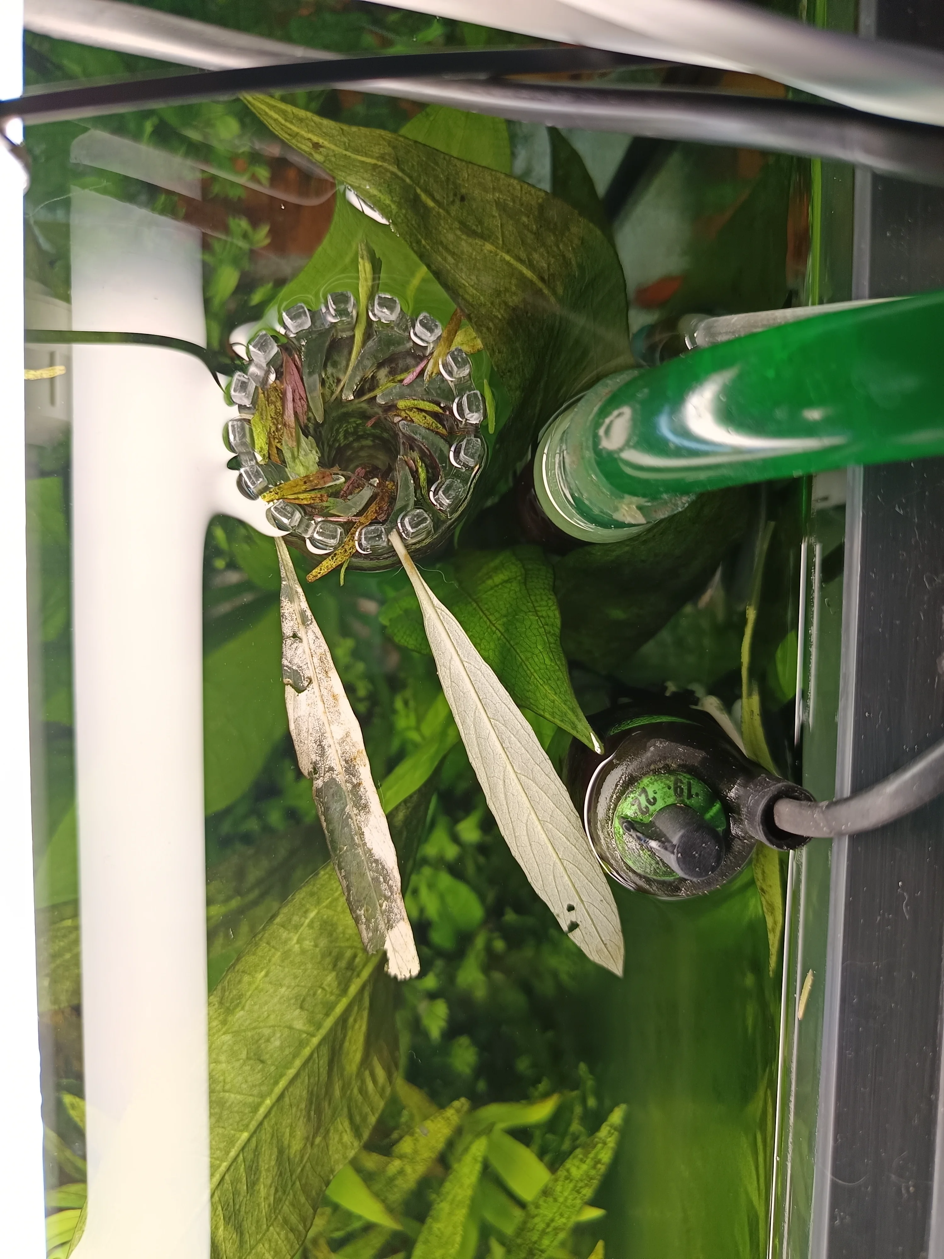 Ich habe ein dauerhaftes Problem mit dem Pflanzenwachstum. Ich habe Aquarium seit 4 Jahren (dieses ca.1Jahr), und es gibt ständig Schwierigkeiten mit den Pflanzen: Blattabwurf, schlechtes Wachstum und Probleme mit Grünalgen (grüne Punktalgen). Es ist nicht alles katastrophal, aber das Aquarium wirkt nicht wirklich gesund.
