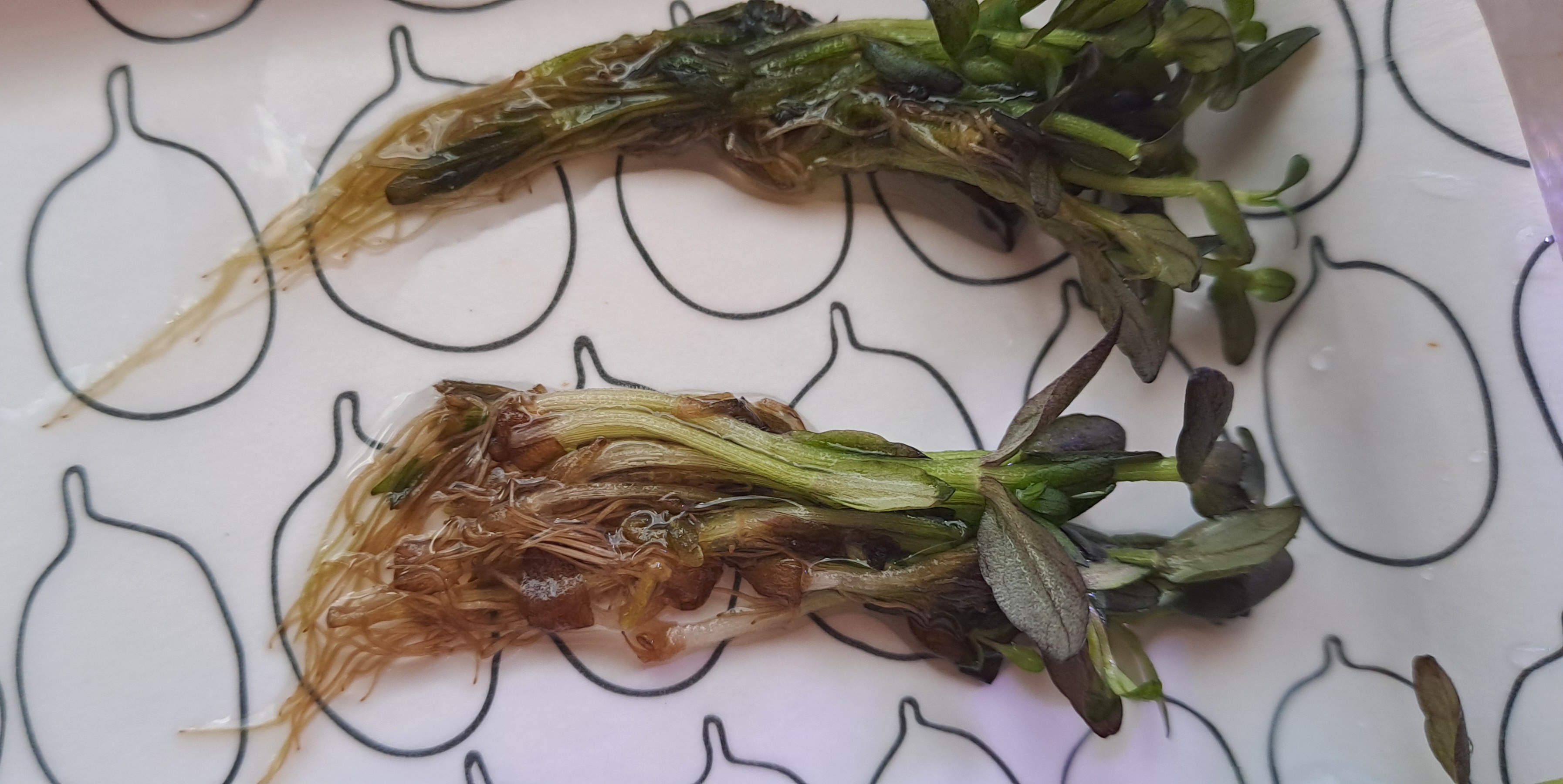 die Bacopa salzmannii purple wird es nicht packen. Die war bei Lieferung schon ziemlich matschig. Ich habe ein paar halbwegs feste Köpfe trotzdem gepflanzt, aber die werden jetzt leider auch glasig.