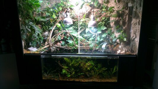 Bewohner an Land zind zur Zeit 8 Rotkehlanoli und 5 Hyperolis Mitchelli 2 Hyperolis Punctiatus ca 3 Jungerferngeckos .