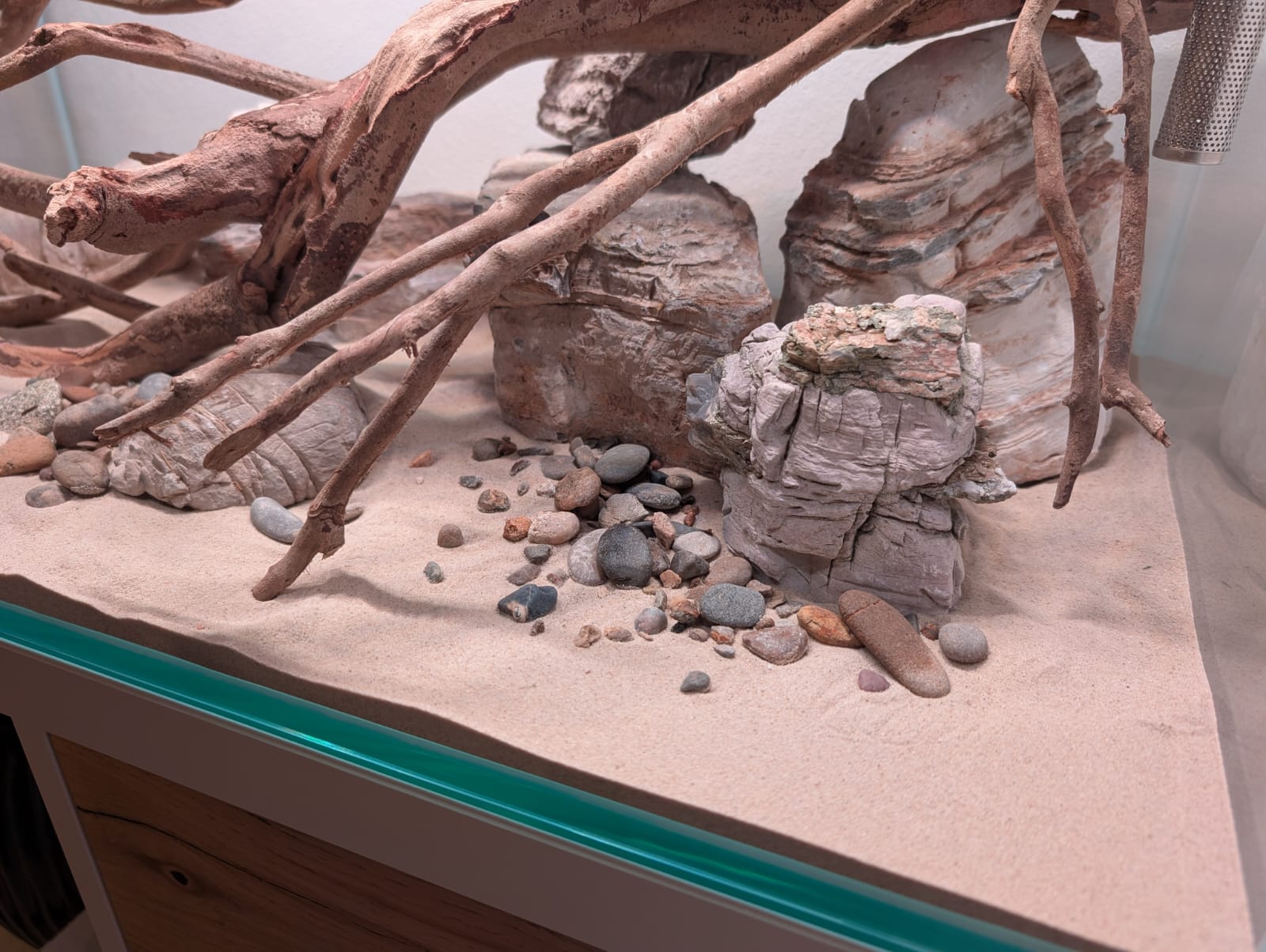 Hallo Timo,Hallo Andi, ich habe ein sehr frisches Aquarium (4 Wochen alt) welches nur mit Aufsitzern bepflanz ist und auch nur mit Sand.
