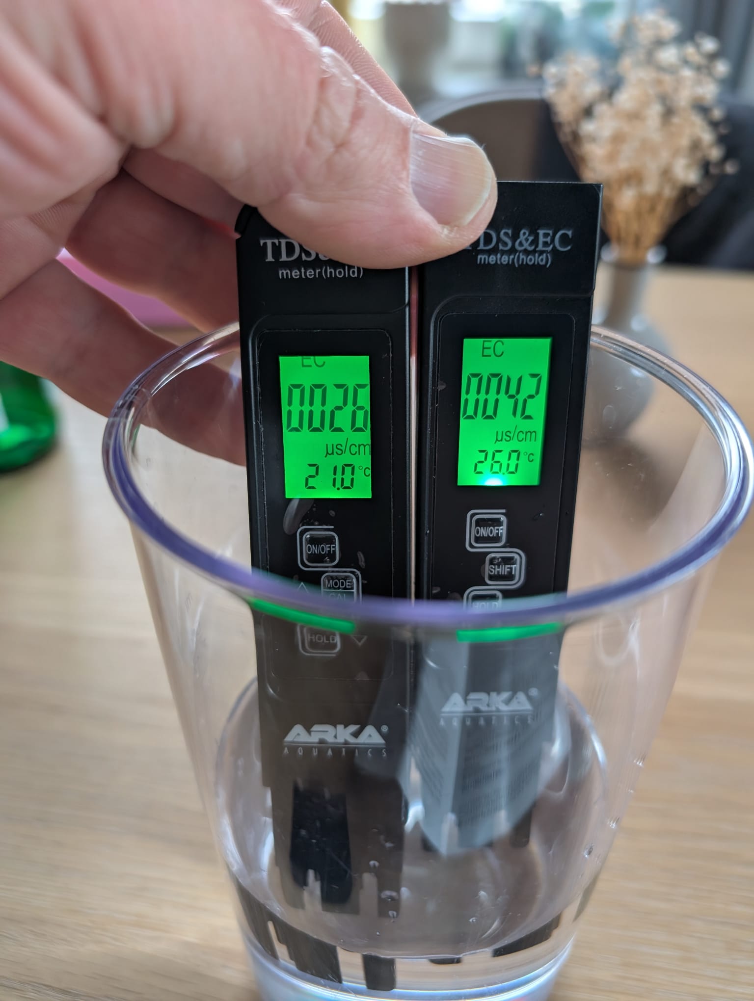 Welches Leitfähigkeit hat das Wasser nach der Osmoseanlage? 1mg/L Nitrat kann unter Umständen sein, eine Osmoseanlage hat eine Rückhalterate von 9-95%, entsprechend verbleibt etwas im Wasser.