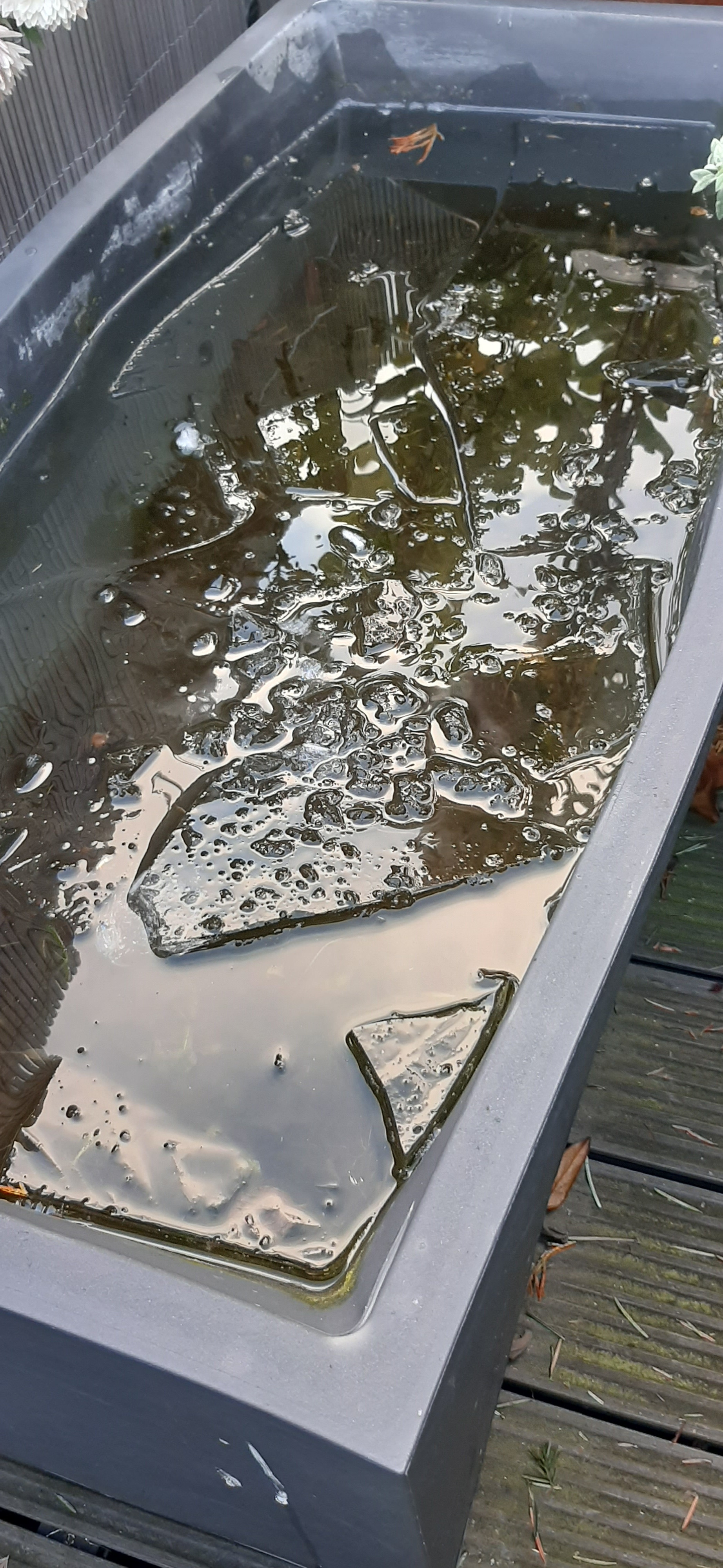 Nun hat sich eine nette Eisschicht auf dem Terrassenkübel gebildet und ich musste Eisbrecher spielen.
