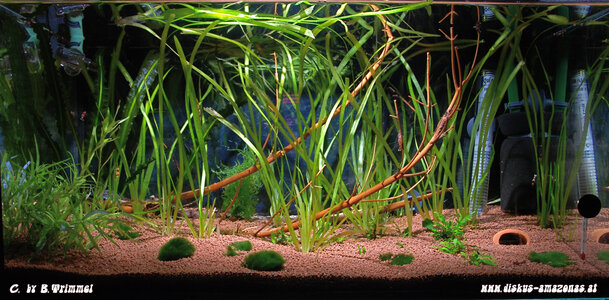 Hier möchte ich mein 60Liter Garnelenbecken zeigen. Derzeit sind darin 8Red Crystal und ein paar sehr winzige Pünktchen, was lt meinem Zoohändler zu 99% Babies sein werden. Als Beleuchtung verwende ich eine Daylight Neonröhre. gedüngt wird mit dem Abwasser vom großen Becken und fallweise mit dem FlowGrowMikro. Co2 Anlage verwende ich hier keine.