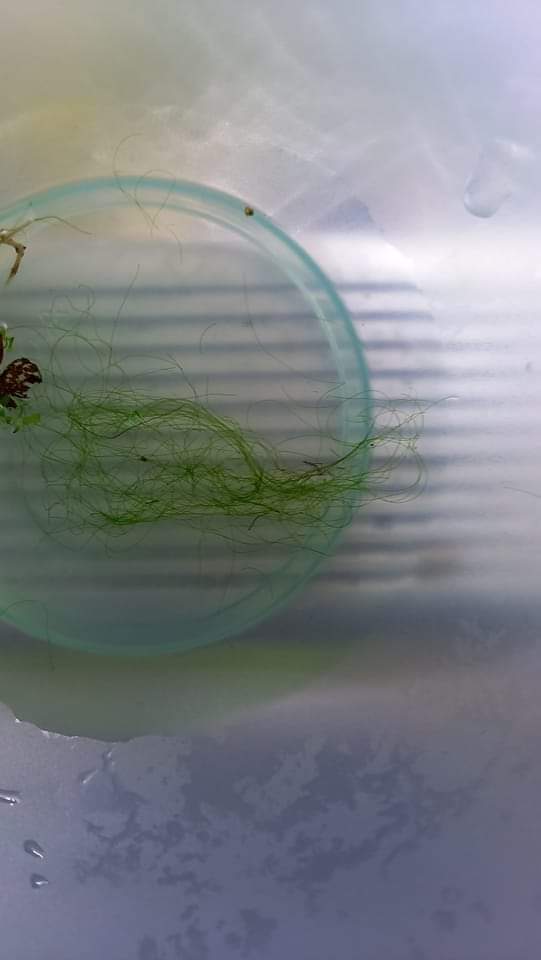 Die Alge ist teilweise 10cm lang, wenn man vorsichtig daran zieht bekommt man sie raus!