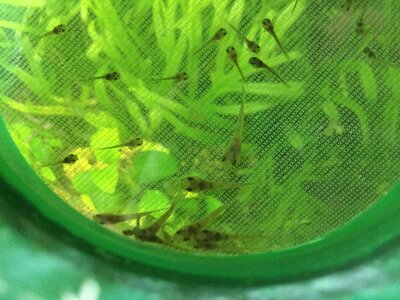 Weder Tupperschale noch Marina Hang in Box noch Netzaufzuchtkasten im Becken waren von Erfolg gekrönt, nach einigen Tagen sind sie nach und nach gestorben