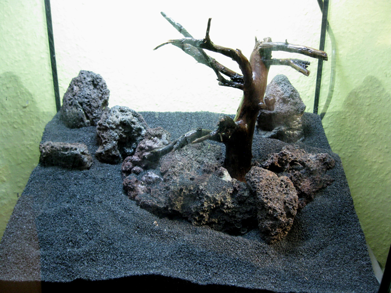 Ich möchte einem Becken mit 11 Watt LSR und den Maßen 35x25x35cm ein Layout aus Lavasteinen und einer Wurzel "verpassen". Leider habe ich mit Aquascaping bisher nicht viel am Hut gehabt (abgesehen v. einem 12 Liter Versuchsbecken) und könnte ein wenig Hilfestellung beim Layout des Hardscapes gebrauchen- bin mir da unsicher, wie es wirkt...