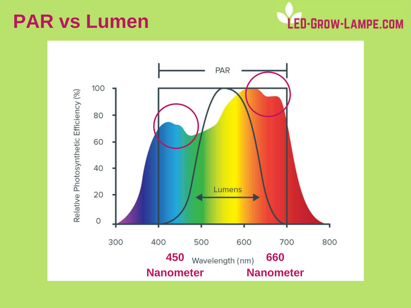 PAR orientiert sich also an den Spektren, die die Pflanzen ausnutzen. Lumen an dem was wir menschen sehen.
