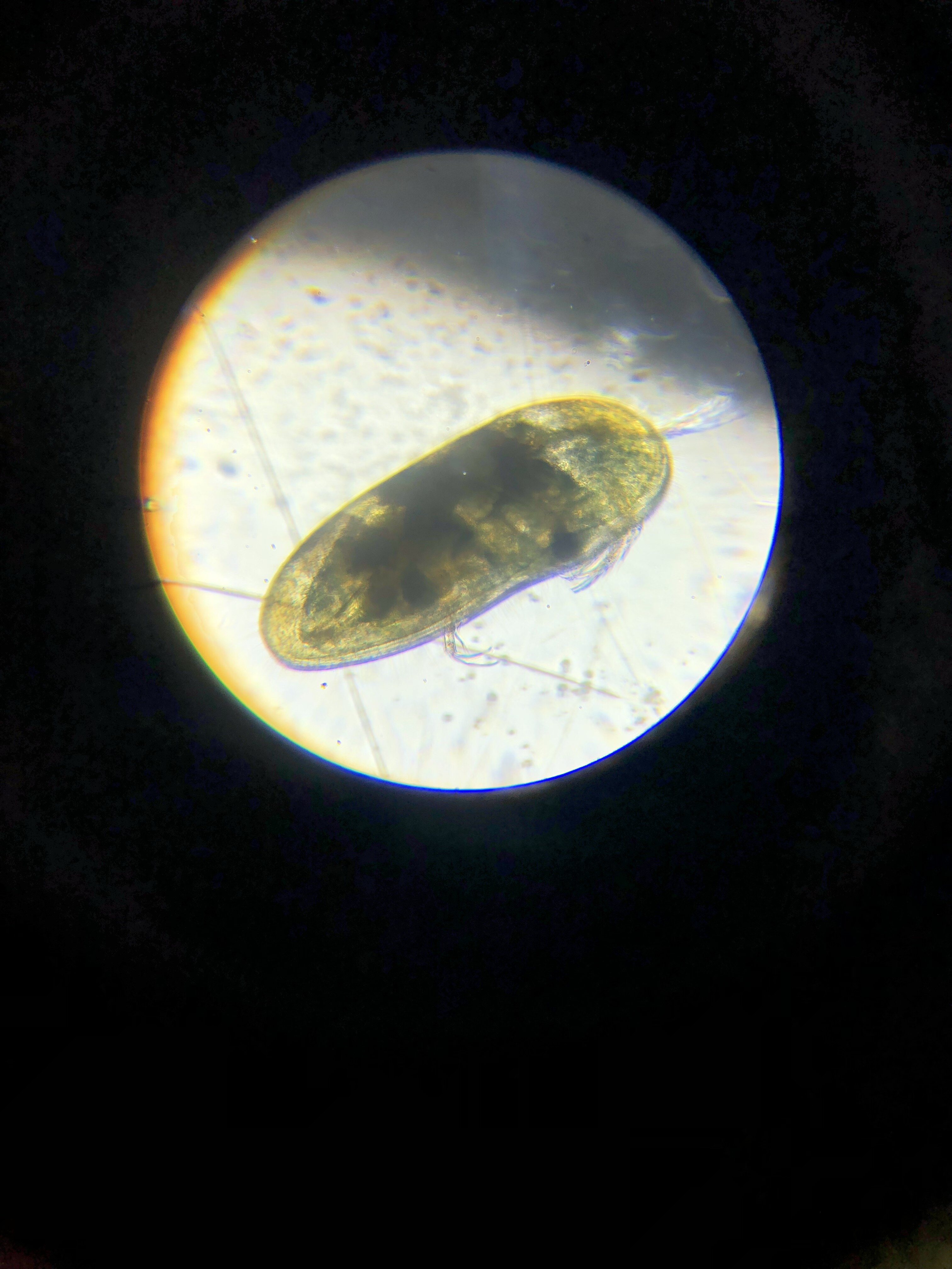 Bei meinem wöchentlichen Wasserwechsel bin ich heute auf mehrere, sehr kleine, sich auf dem Bodengrund fortbewegende Lebewesen gestoßen. Als eines dieser Tierchen zu einem Blatt schwimmen wollte, hab ich es mit einer Pipette eingesaugt und unter mein Mikroskop gelegt. Ich habe leider keine Ahnung, um was es sich dabei handeln könnte, wollte nur sichergehen, dass es nichts Gefährliches ist. Im besagten Becken (30l Cube) sind nur Rennschnecken und Red Fire Sakura Garnelen. Vielleicht kann mir ja hier wer weiterhelfen.
