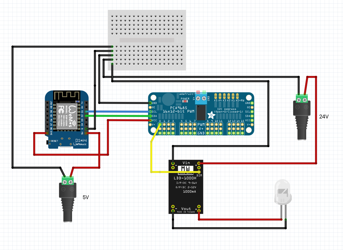 Anhand der Bilder würde ich spontan sagen du hast den Widerstand im ersten Ansatz auf der 24V Eingangsseite verbaut.Hat schon jemand rausgefunden, wo mein Fehler lag?