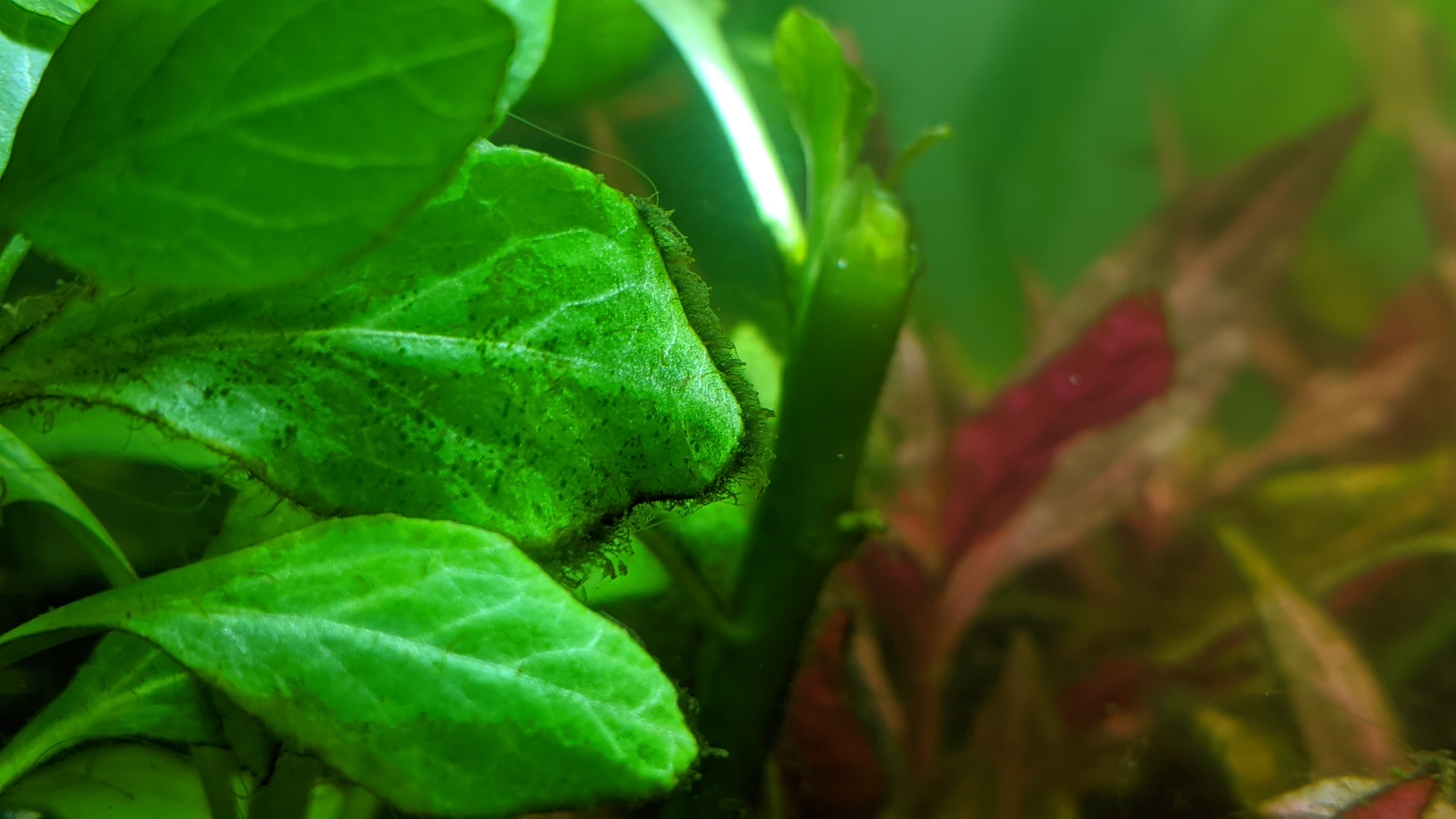 Hier treten eher Kolonien von Glockentierchen und ähnliches auf bevor das Wasser grün wird - im Anhang ein Foto, denn ich habe es Mal wieder mit PO4 übertrieben und auch Bartalgen provoziert. Früh erkannt, stoppe ich P Dünger und in einer Woche sind die wieder weg - danach einfach weniger P Düngen.